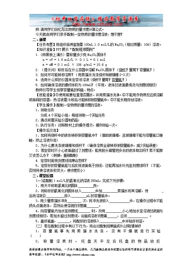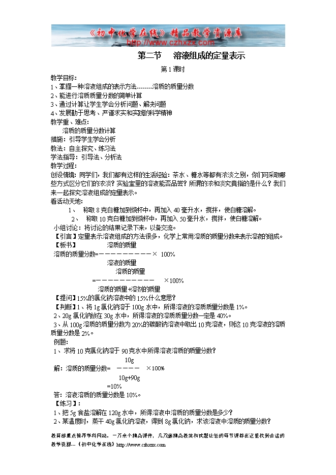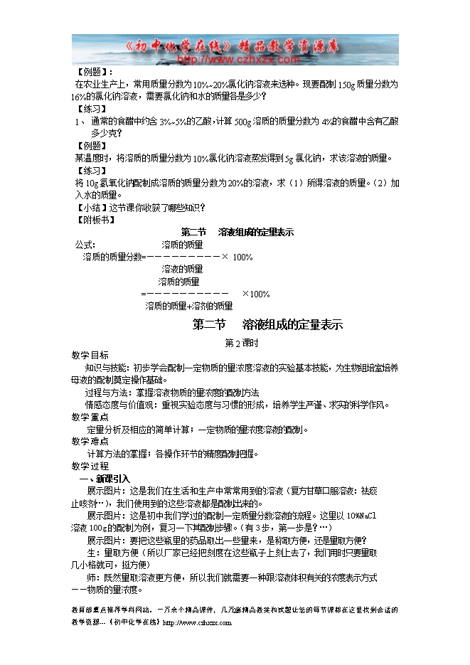 2014-2015新鲁教版初中化学《第三单元第二节 溶液组成的定量表示》教学设计