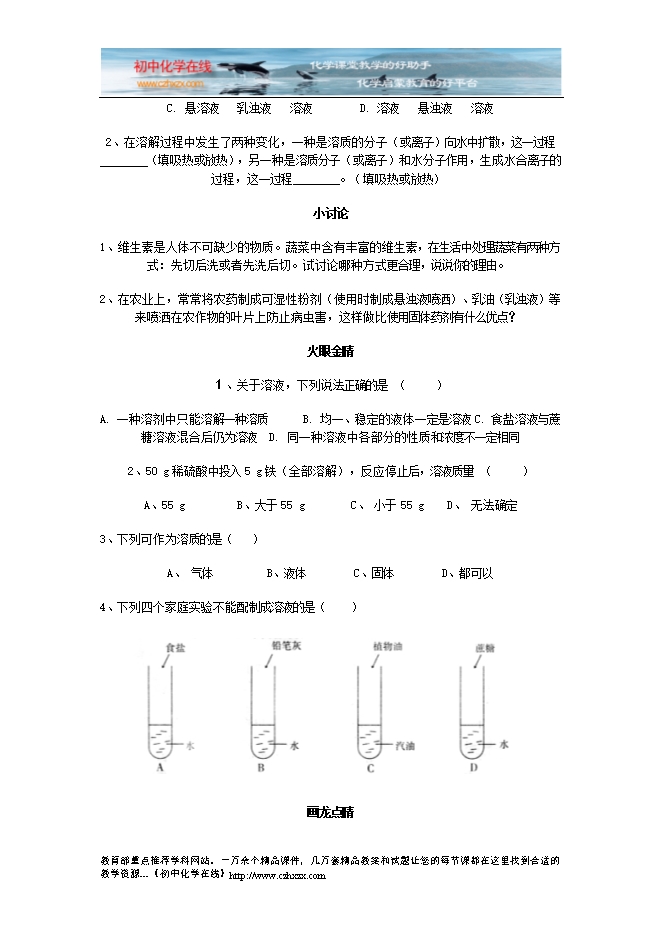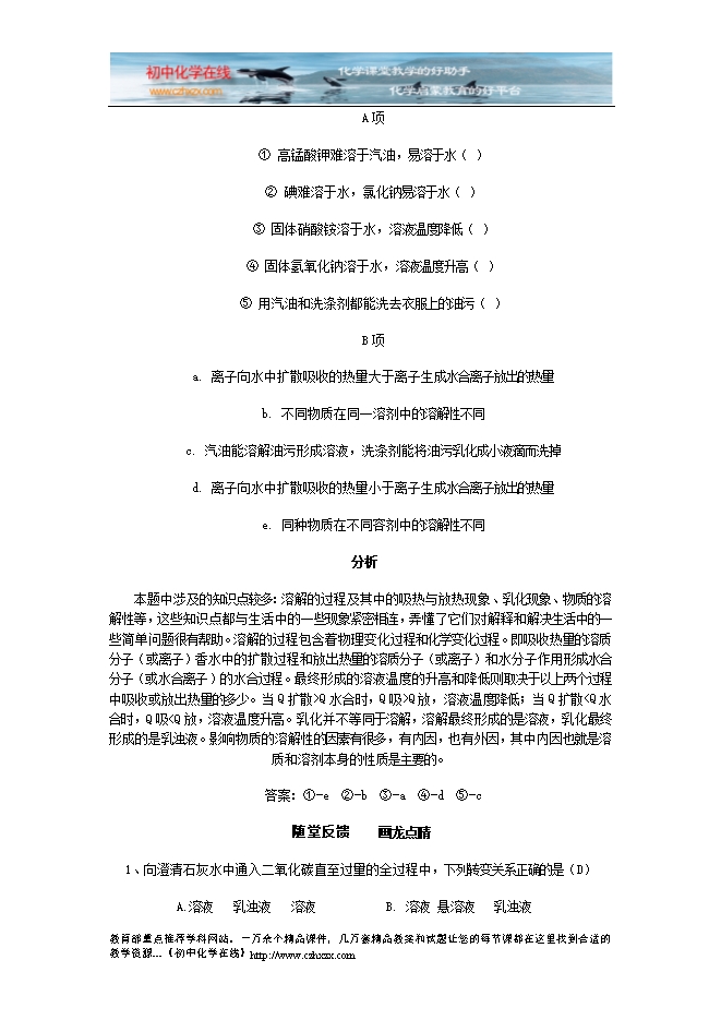 人教版《第九单元课题1 溶液的形成》检测题及答案分析