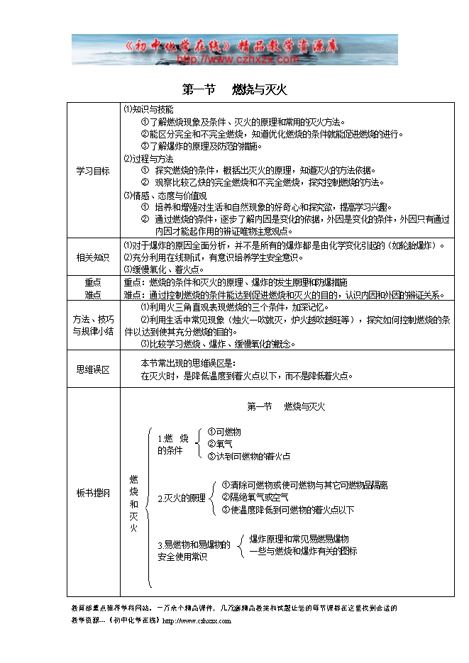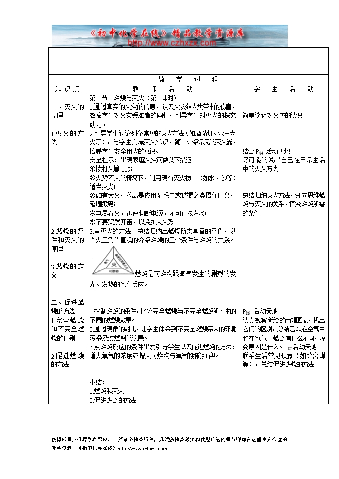2014-2015新鲁教版初中化学《第六单元第一节 燃烧与灭火》教学设计
