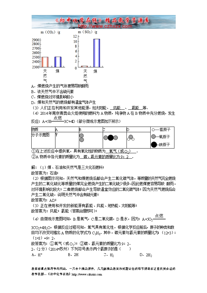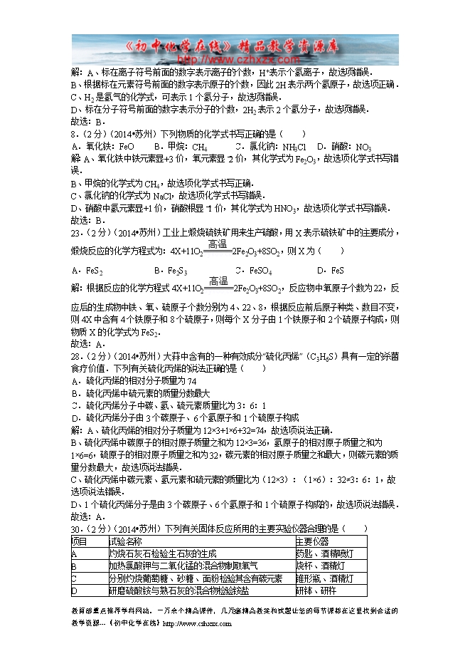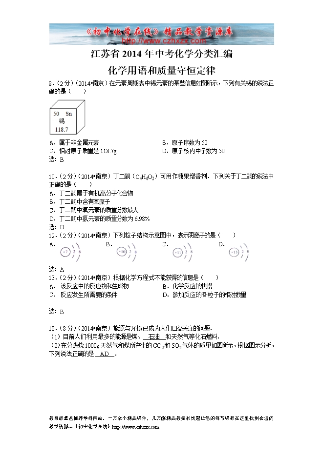 2014年江苏省中考化学分类汇编:9化学用语和质量守恒定律