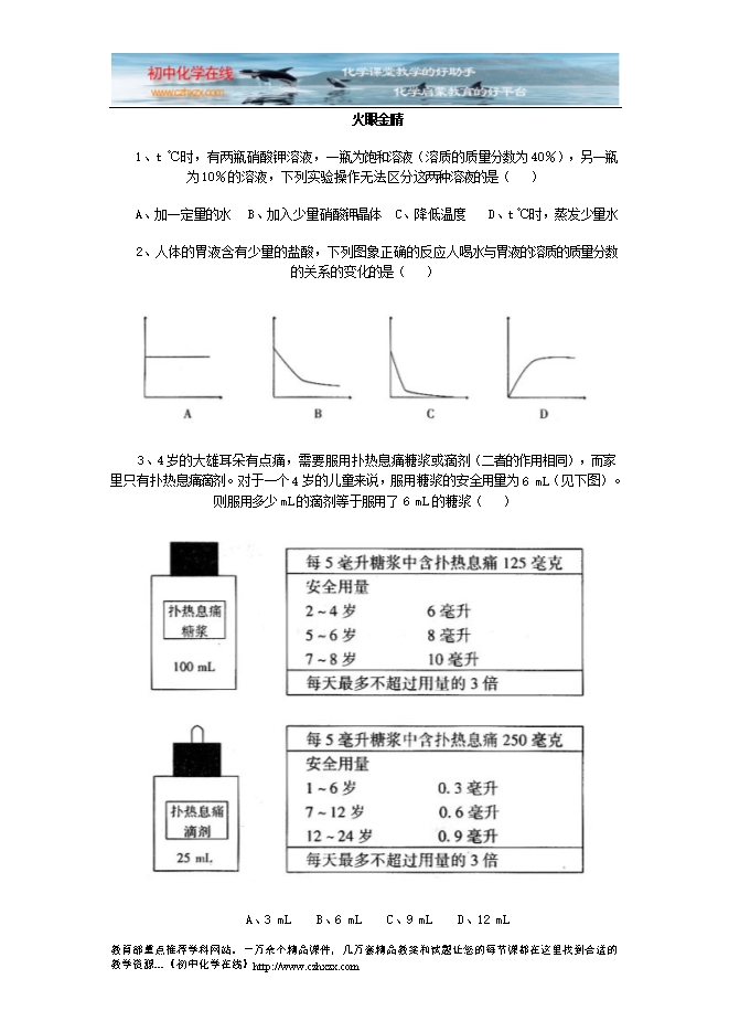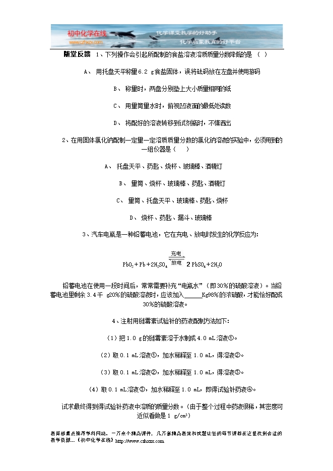 - 上一份试卷:人教版《第九单元课题2 溶解度》检测题及答案分析