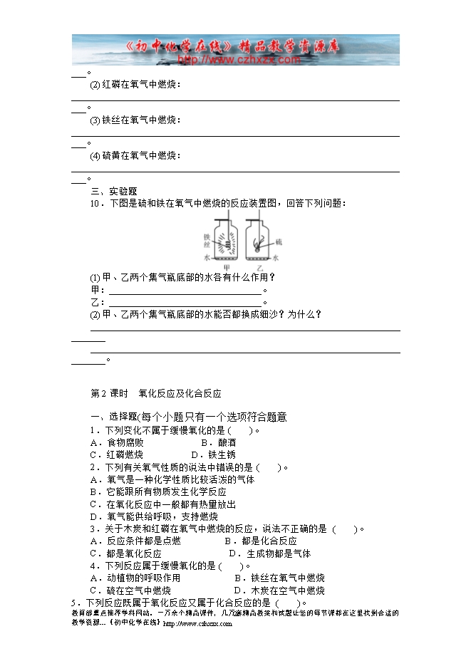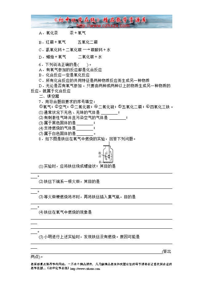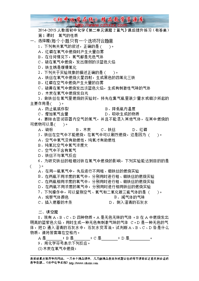 2014-2015人教版初中化学《第二单元课题2 氧气》课后提升练习(有答案)