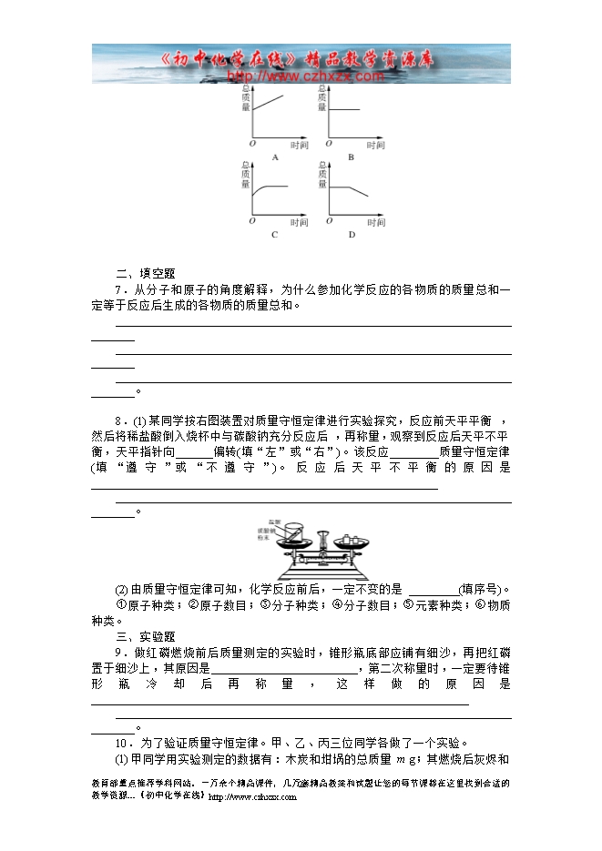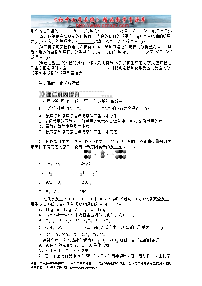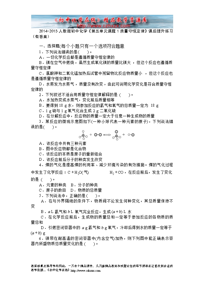 2014-2015人教版初中化学《第五单元课题1 质量守恒定律 》课后提升练习(有答案)
