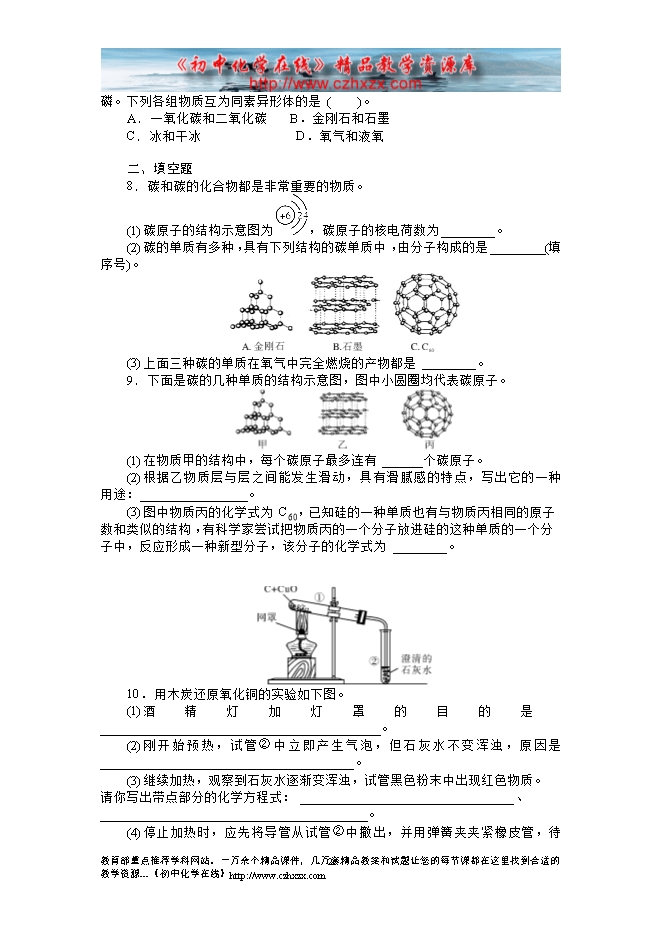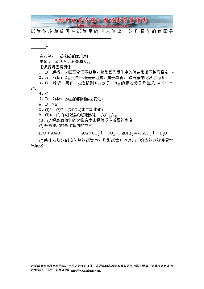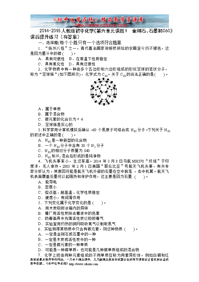2014-2015人教版初中化学《第六单元课题1 金刚石、石墨和C60》课后提升练习(有答案)