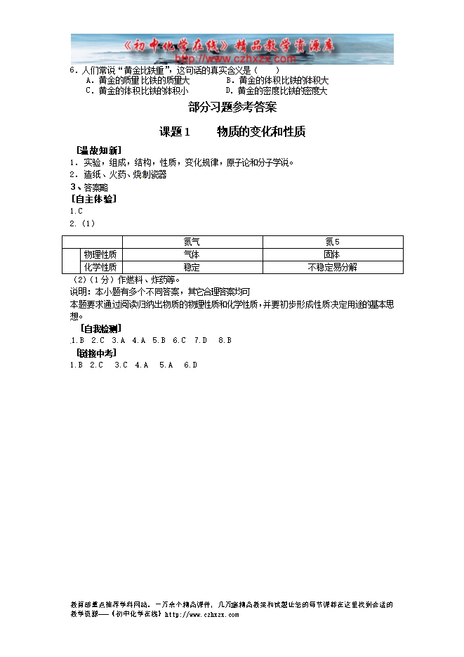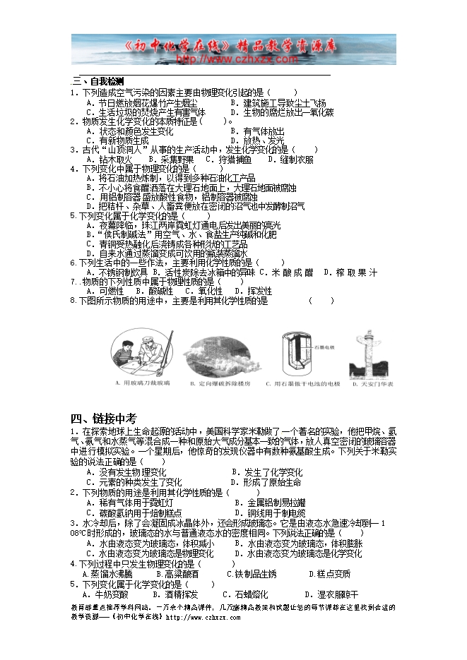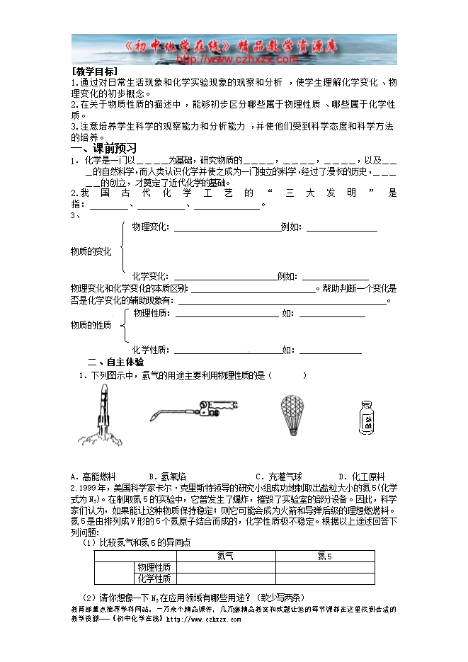 甘肃省玉门市花海中学人教版化学《第1单元课题1 物质的变化和性质》导学案(有答案)