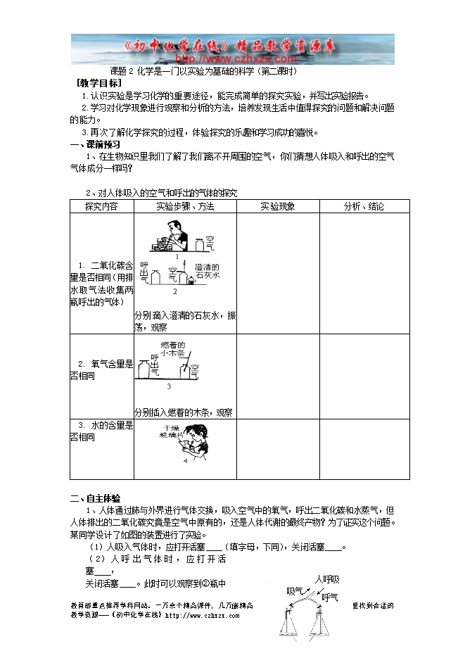 甘肃省玉门市花海中学人教版化学《第1单元课题2 化学是一门以实验为基础的科学第二课时》导学案(有答案)