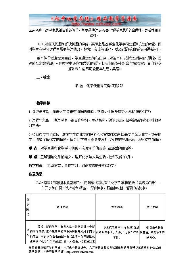 - 下一份资料:人教版《第一单元走 进化学世界》备课资料