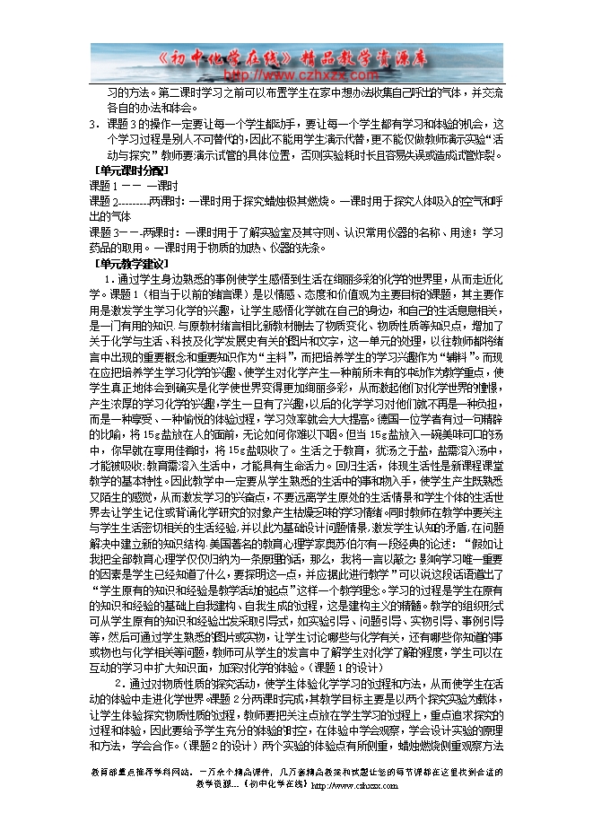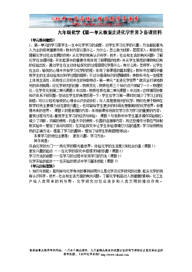 人教版《第一单元走 进化学世界》备课资料