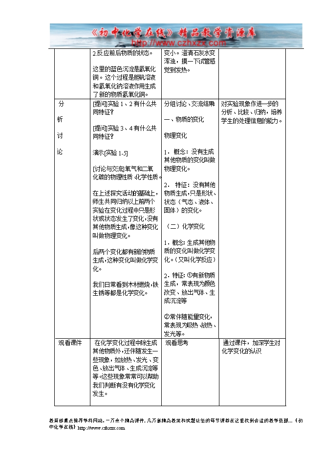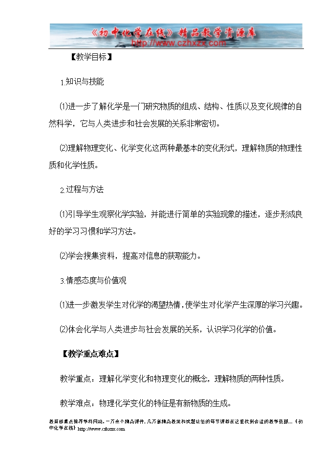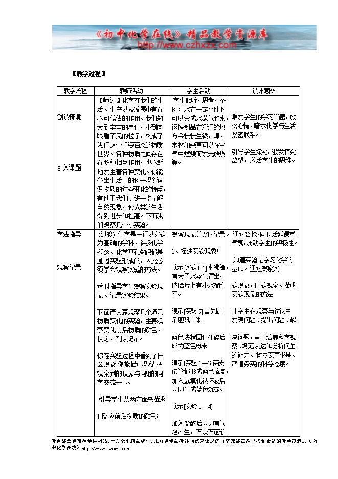 人教版《第一单元走进化学世界课题1 物质的变化和性质》教学设计