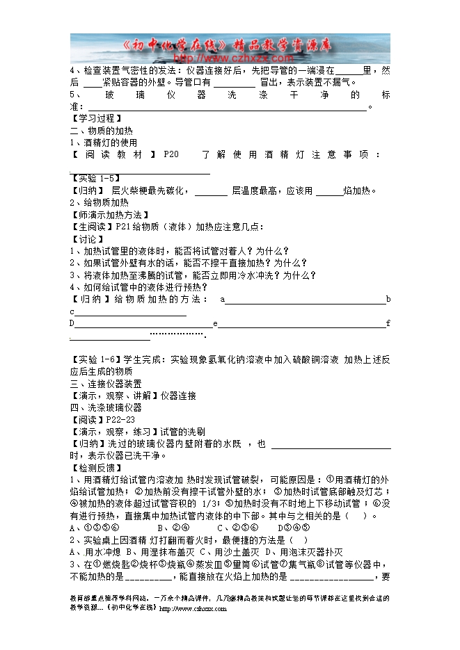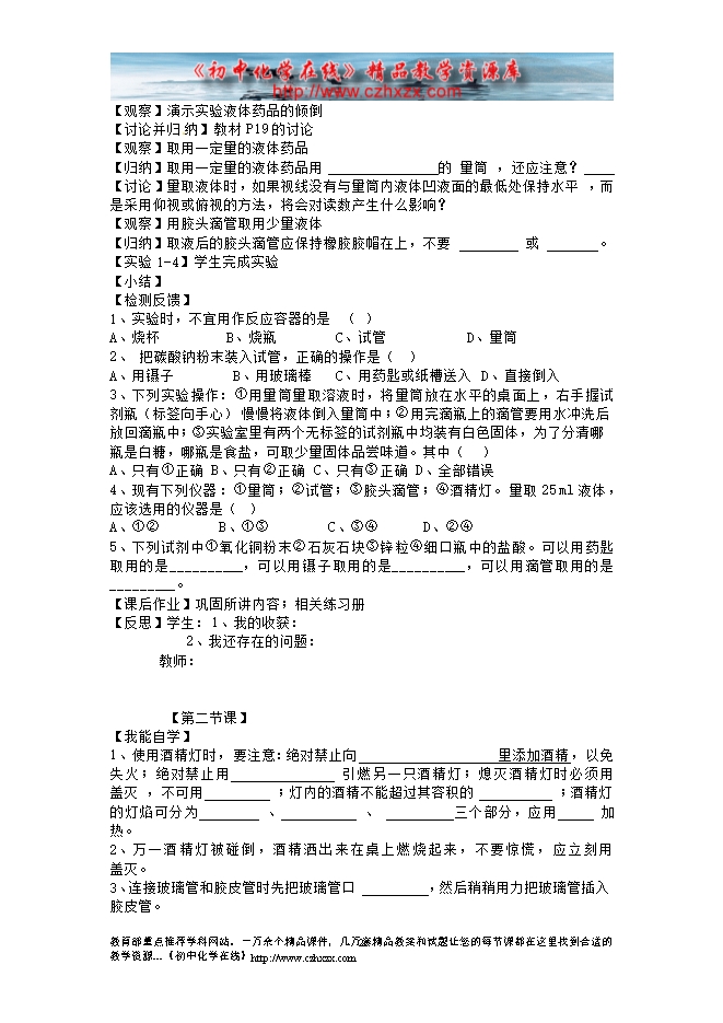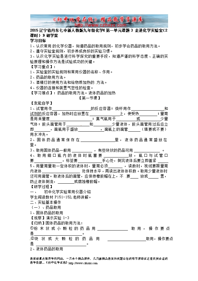 2015辽宁省丹东七中新人教版九年级化学《第一单元课题3 走进化学实验室(2课时)》研学案