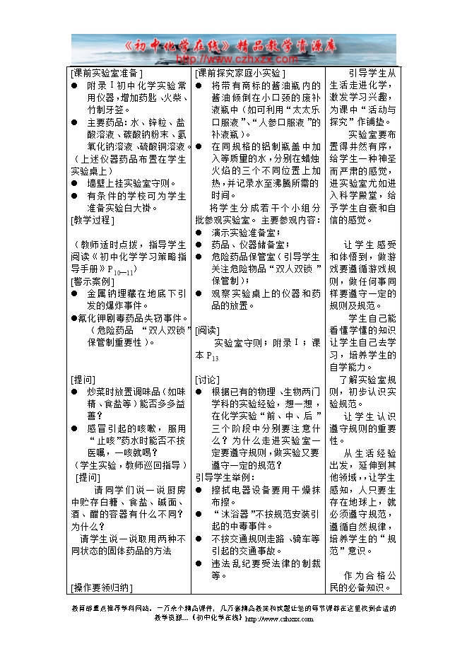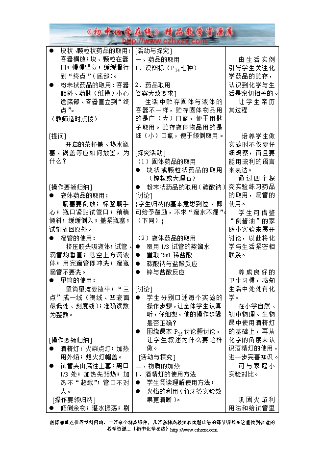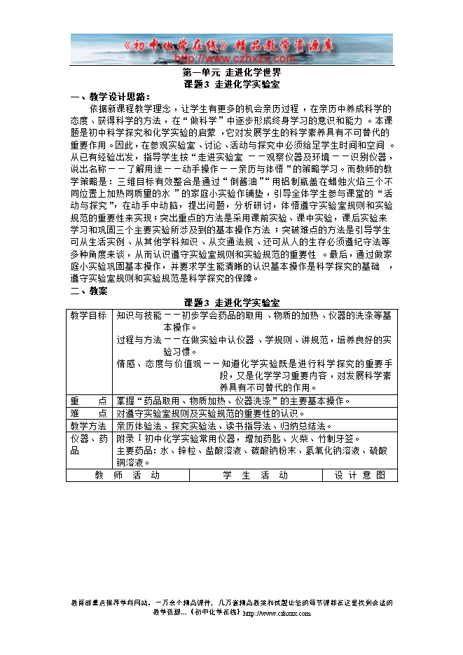 人教版《第一单元课题3 走进化学实验室》教学设计(方案一)