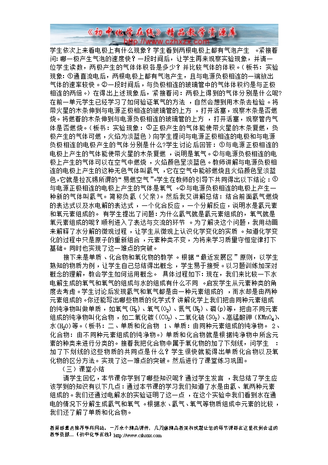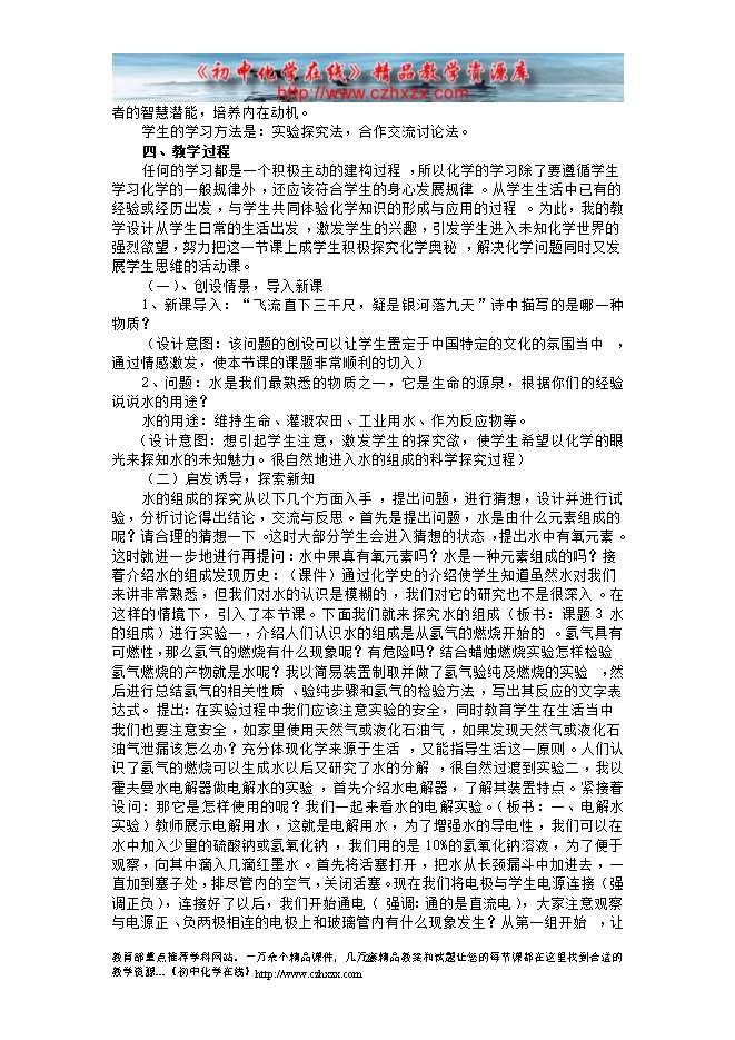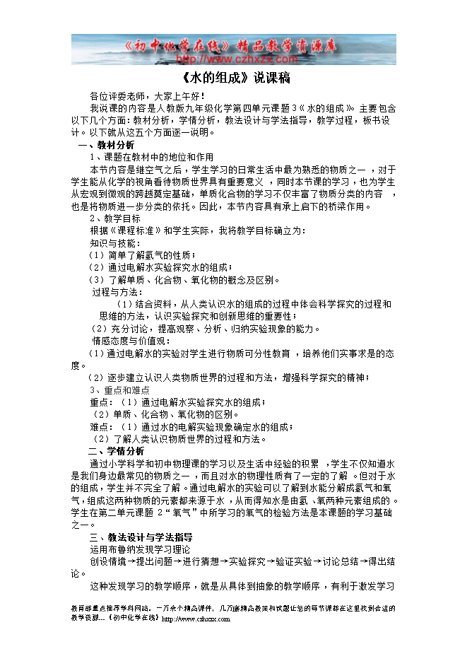 人教版化学九年级上册《第四单元课题3 水的组成》说课稿