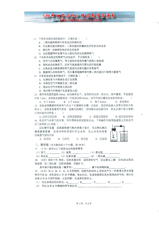 重庆市南开中学2015届九年级上学期阶段测试(一)化学试题(扫描版,无答案)