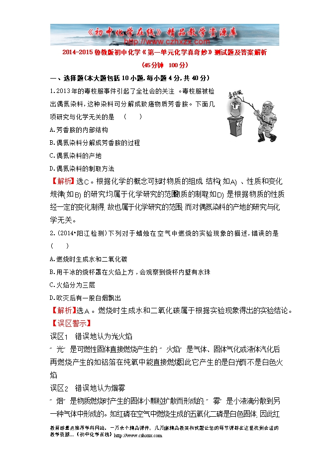 2014-2015鲁教版初中化学《第一章 步入化学殿堂》测试题及答案解析