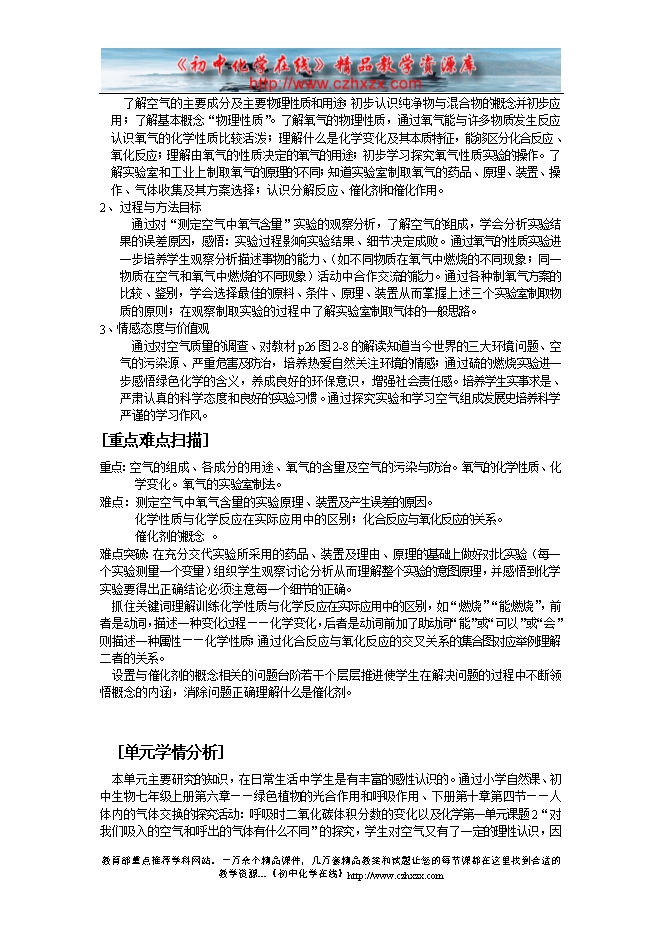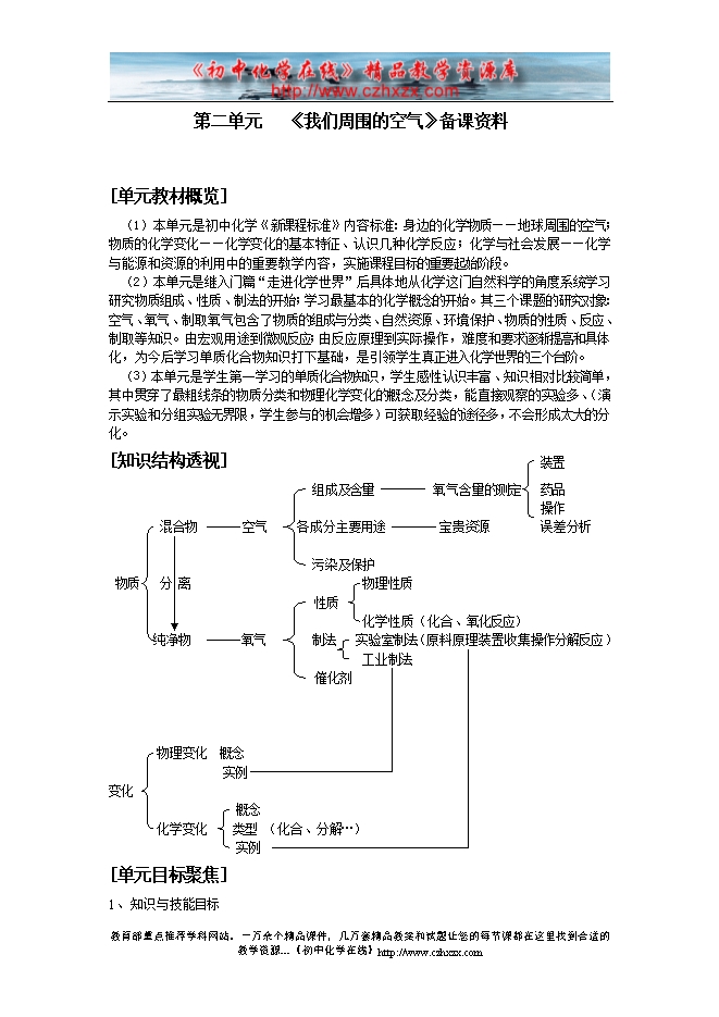 人教版《第二单元 我们周围的空气》备课资料