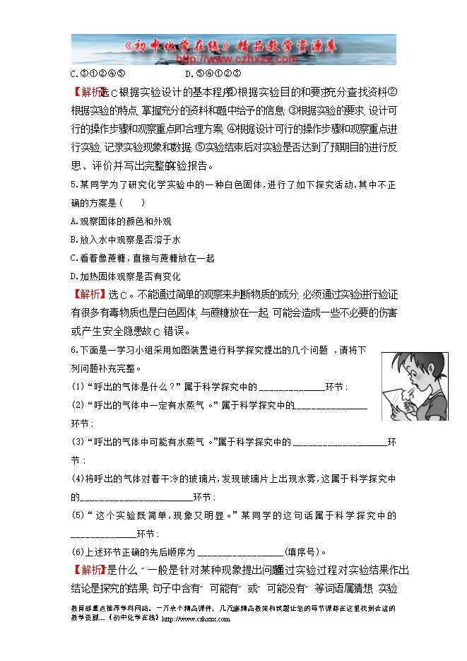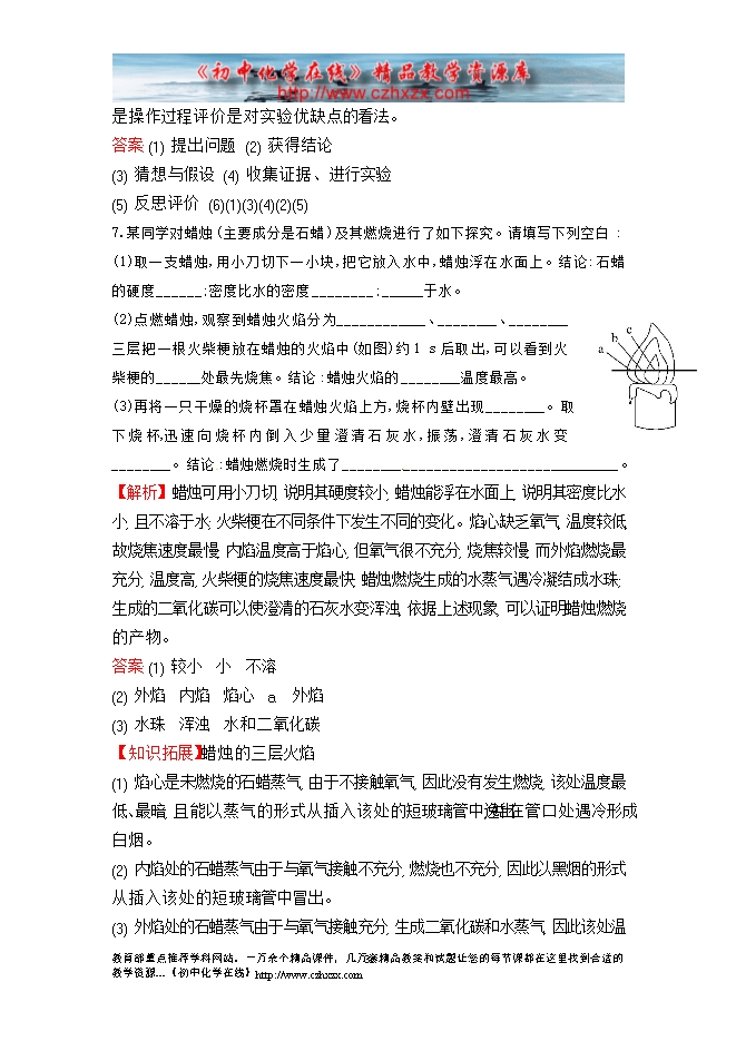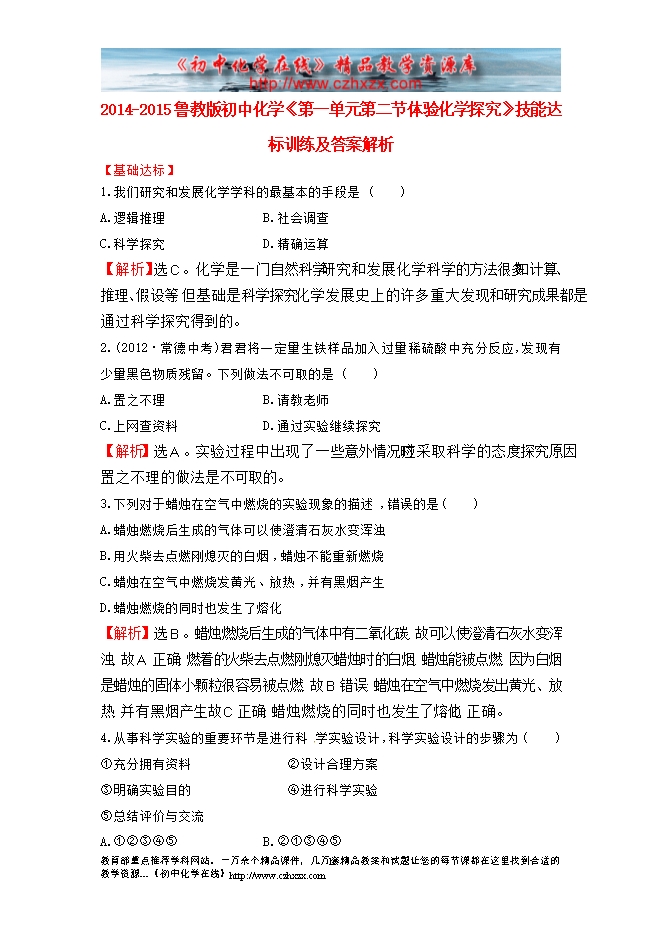 2014-2015鲁教版初中化学《第一单元第二节体验化学探究》技能达标训练及答案解析
