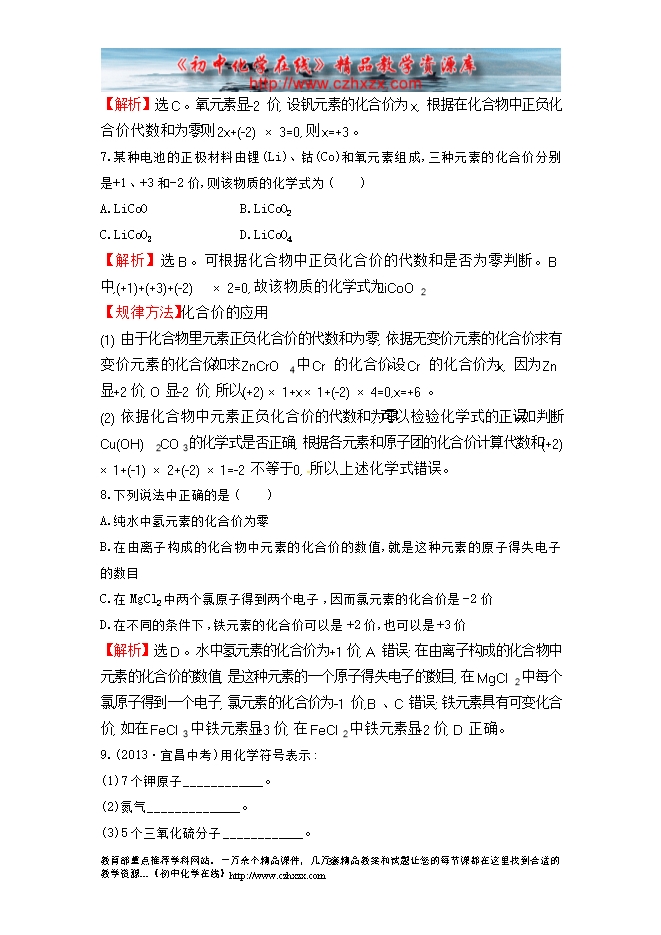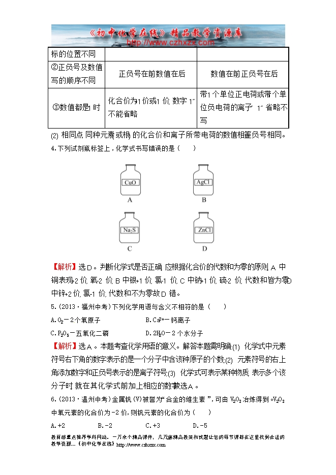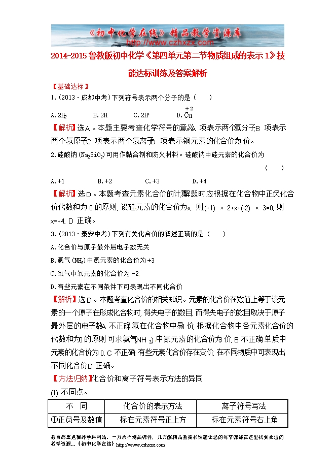 2014-2015鲁教版初中化学《第四单元第二节物质组成的表示1》技能达标训练及答案解析