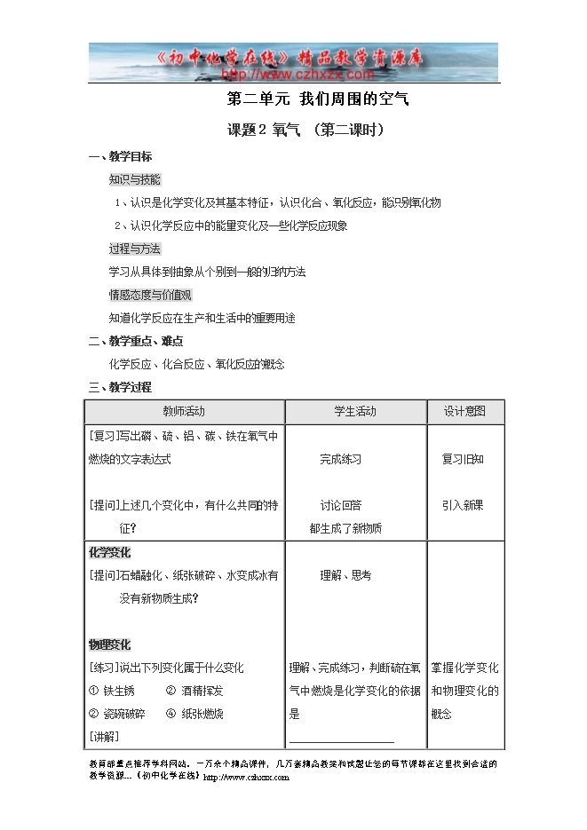人教版《第二单元课题2 氧气 》教学设计(方案一)第二课时