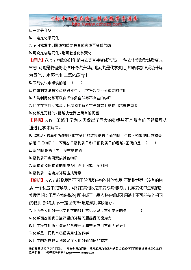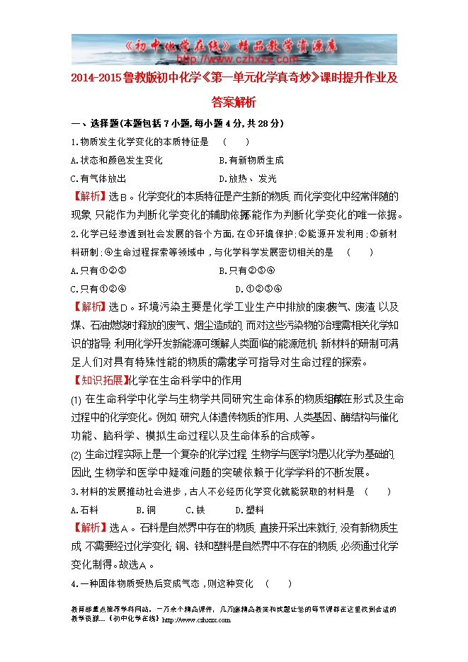 2014-2015鲁教版初中化学《第一章第一节化学真奇妙》课时提升作业及答案解析