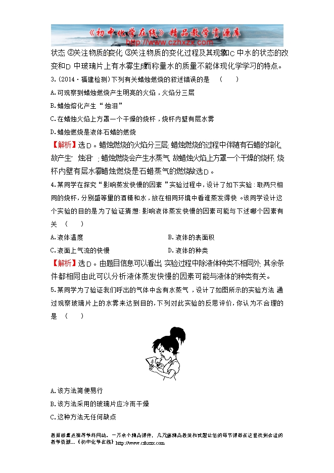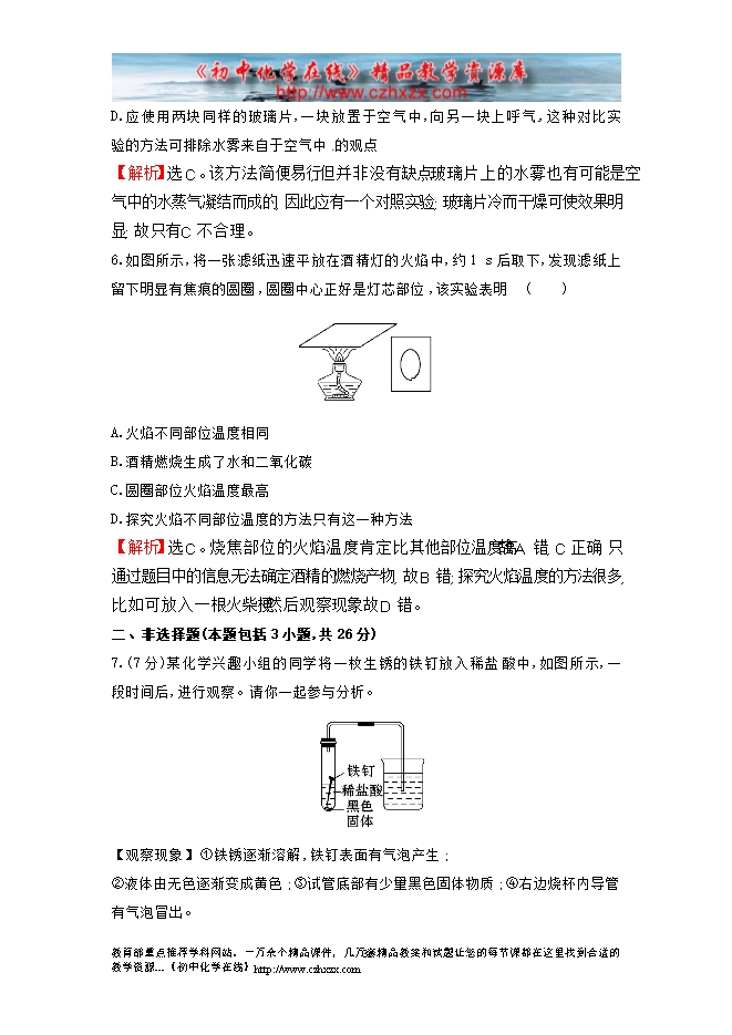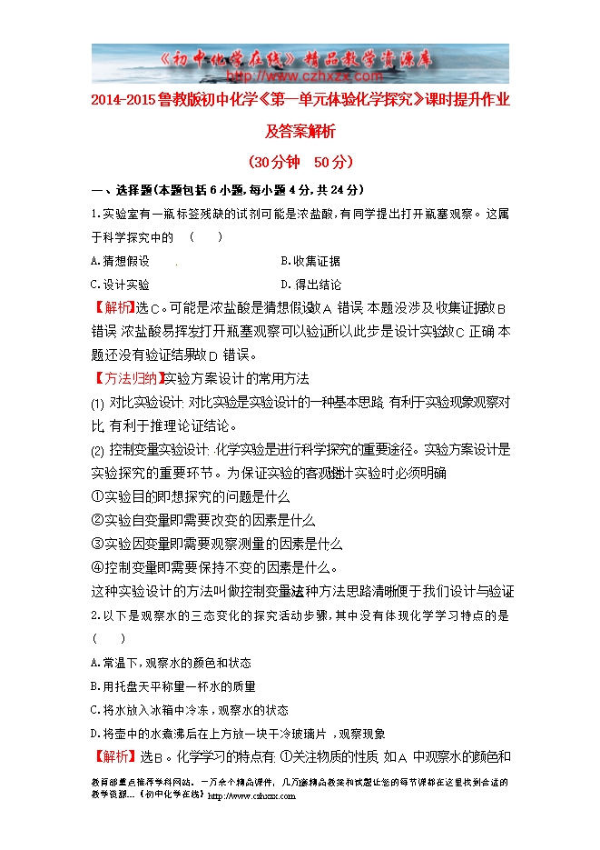 2014-2015鲁教版初中化学《第一单元第二节 体验化学探究》课时提升作业及答案解析