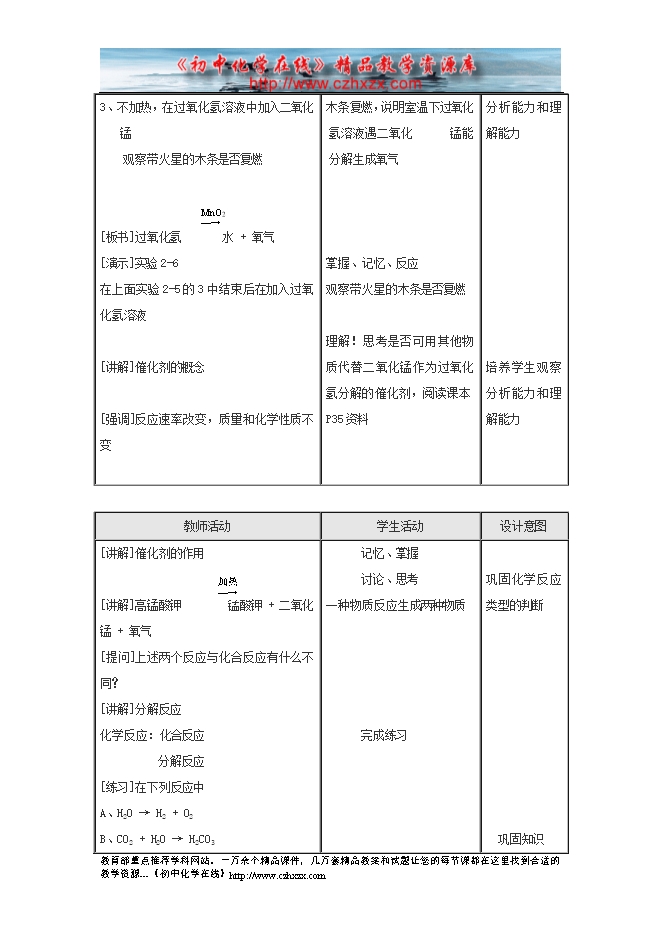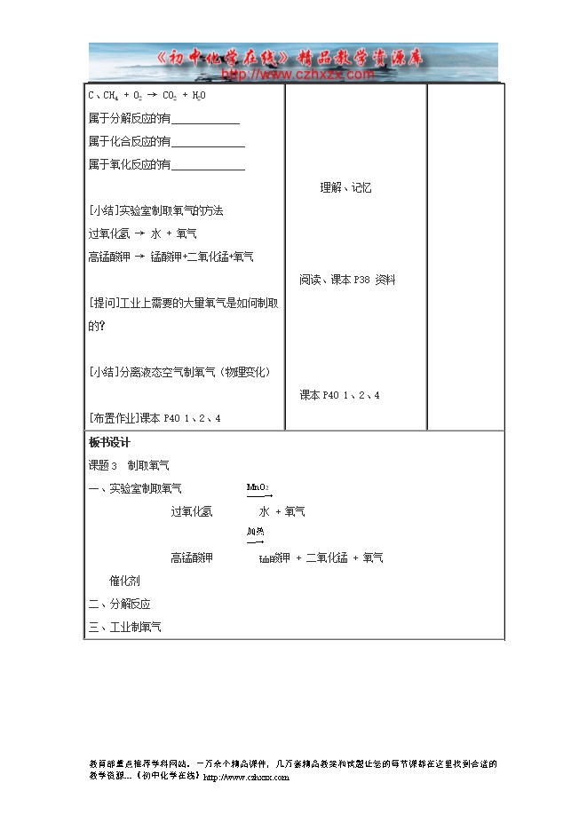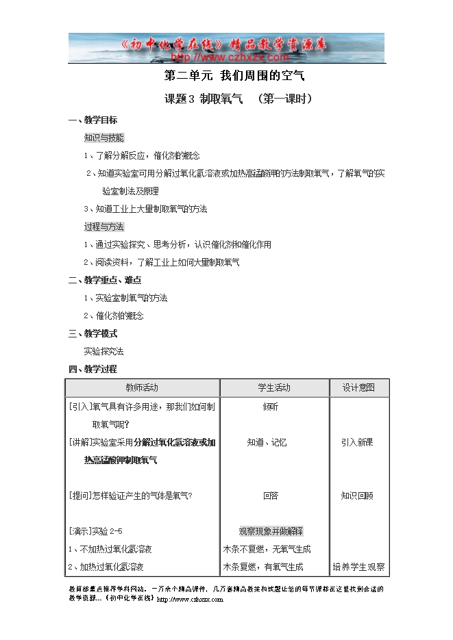 人教版《第二单元课题3 制取氧气 》教学设计(方案一)第一课时