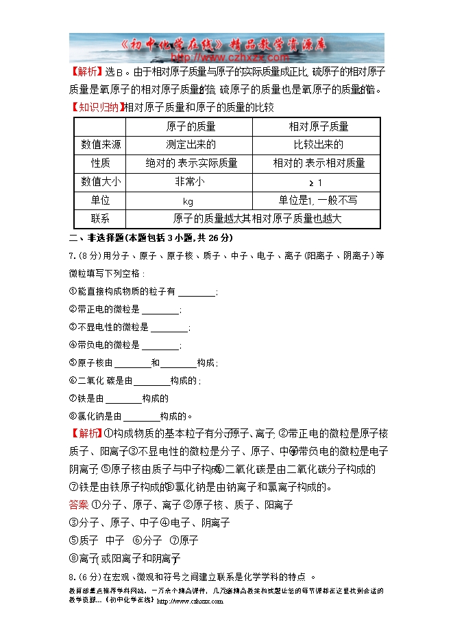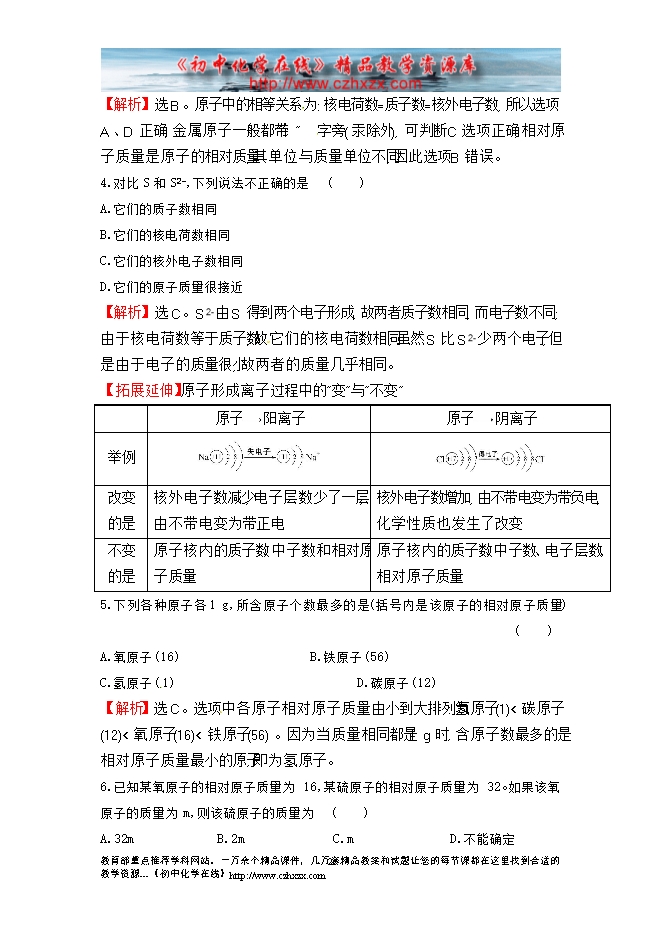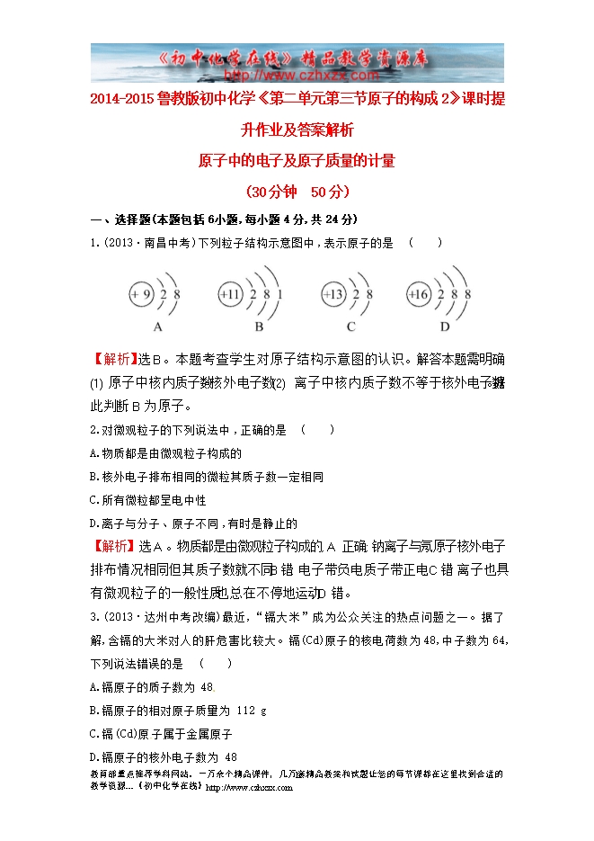 2014-2015鲁教版初中化学《第二单元第三节原子的构成2》课时提升作业及答案解析