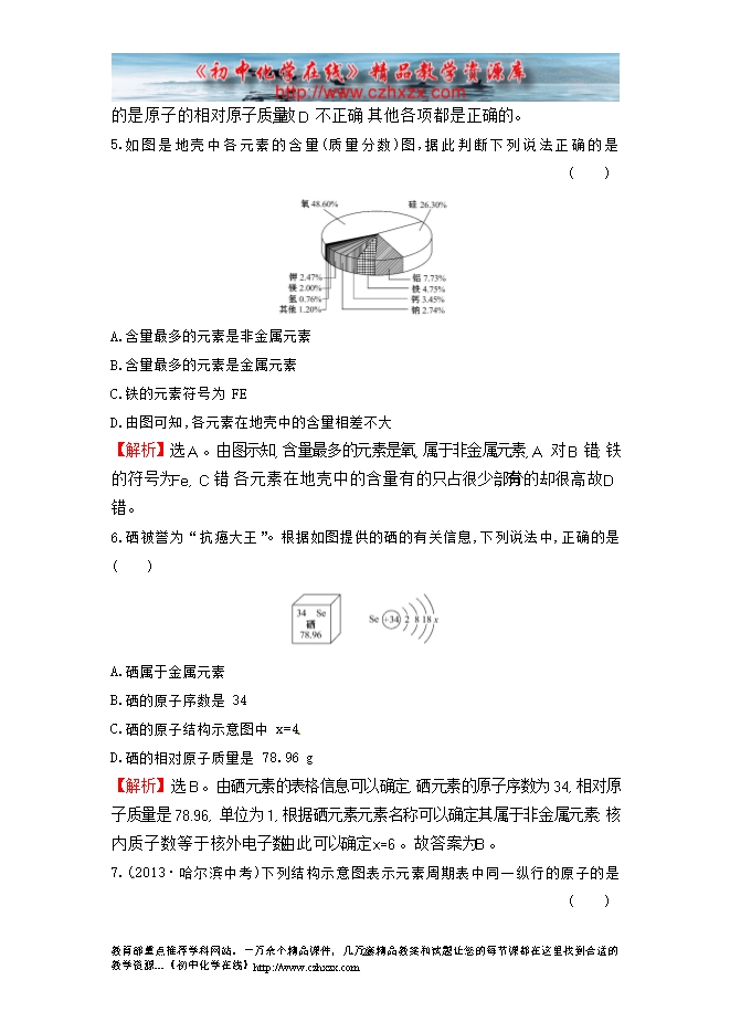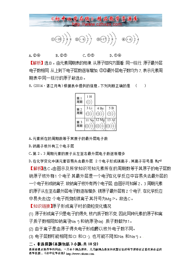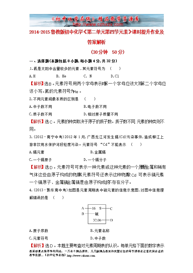 2014-2015鲁教版初中化学《第二单元第四节元素》课时提升作业及答案解析