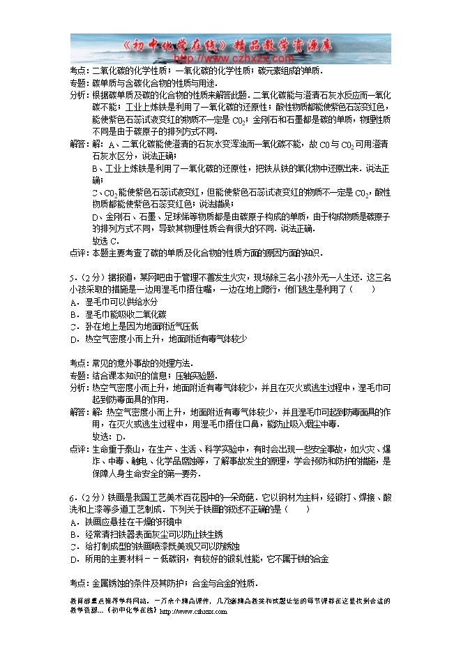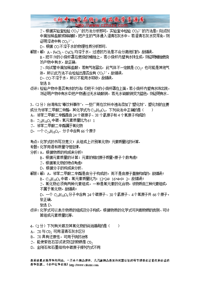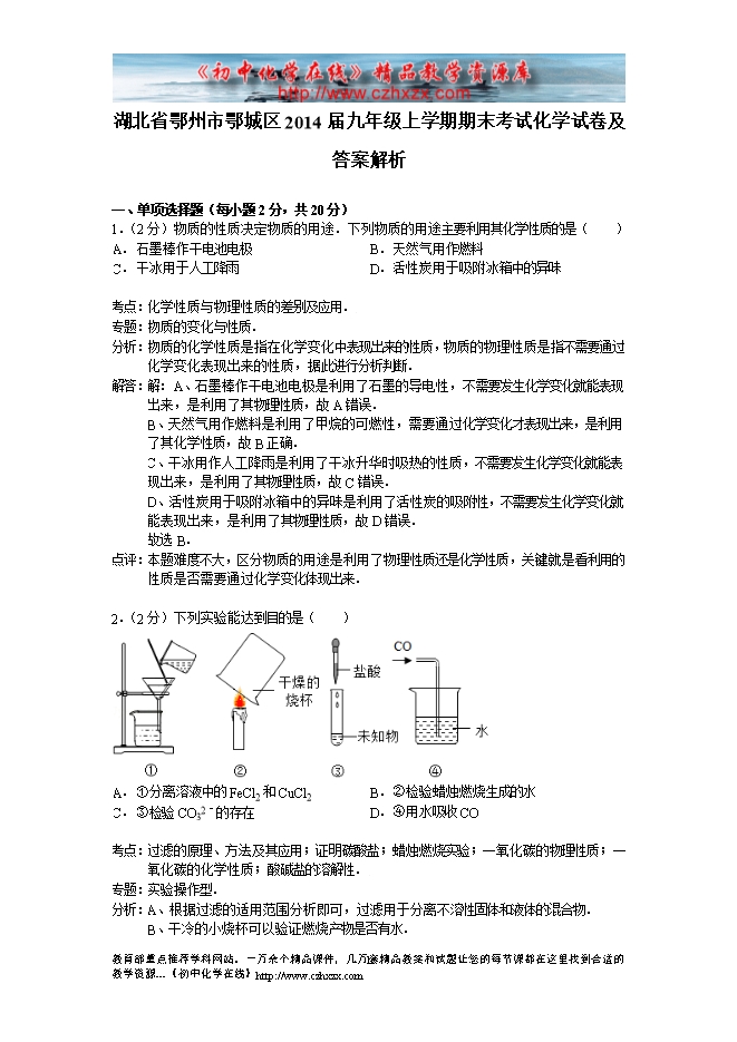 湖北省鄂州市鄂城区2014届九年级上学期期末考试化学试卷及答案解析