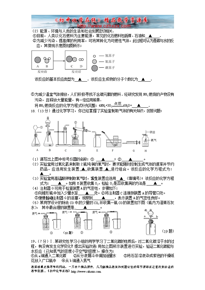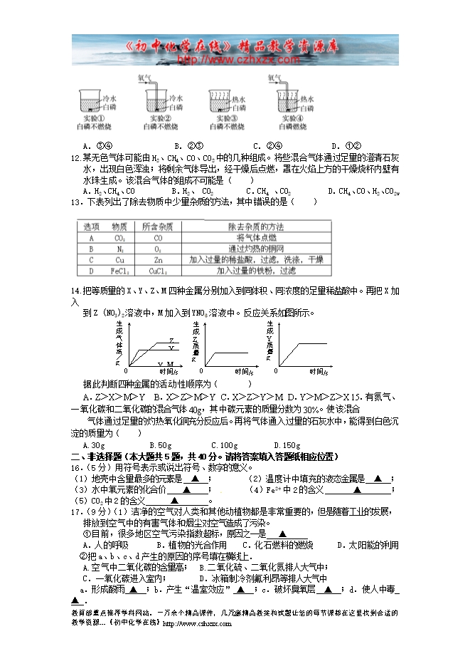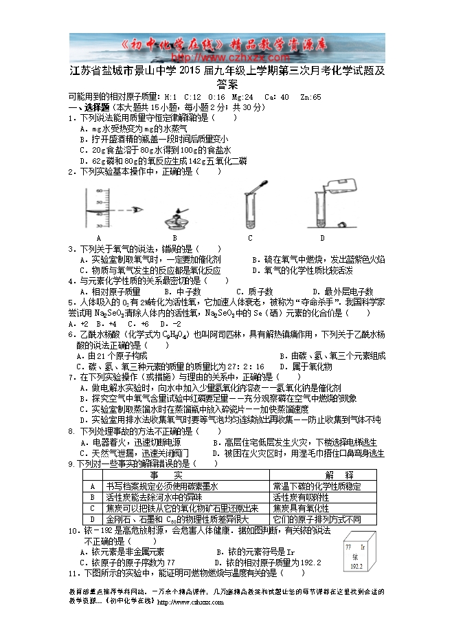 江苏省盐城市景山中学2015届九年级上学期第三次月考化学试题及答案