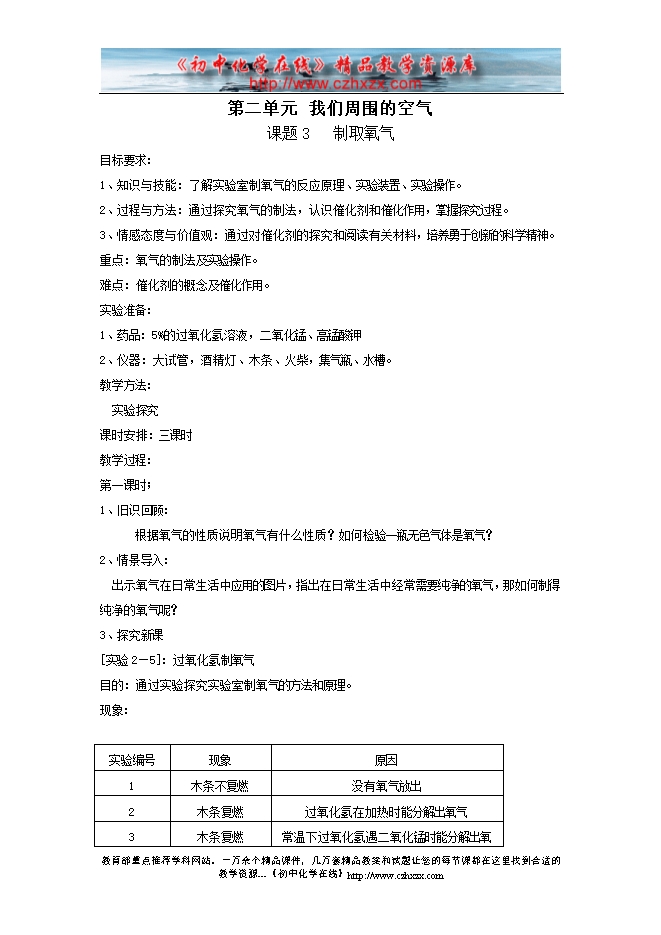 人教版《第二单元课题3 制取氧气 》教学设计(方案二)