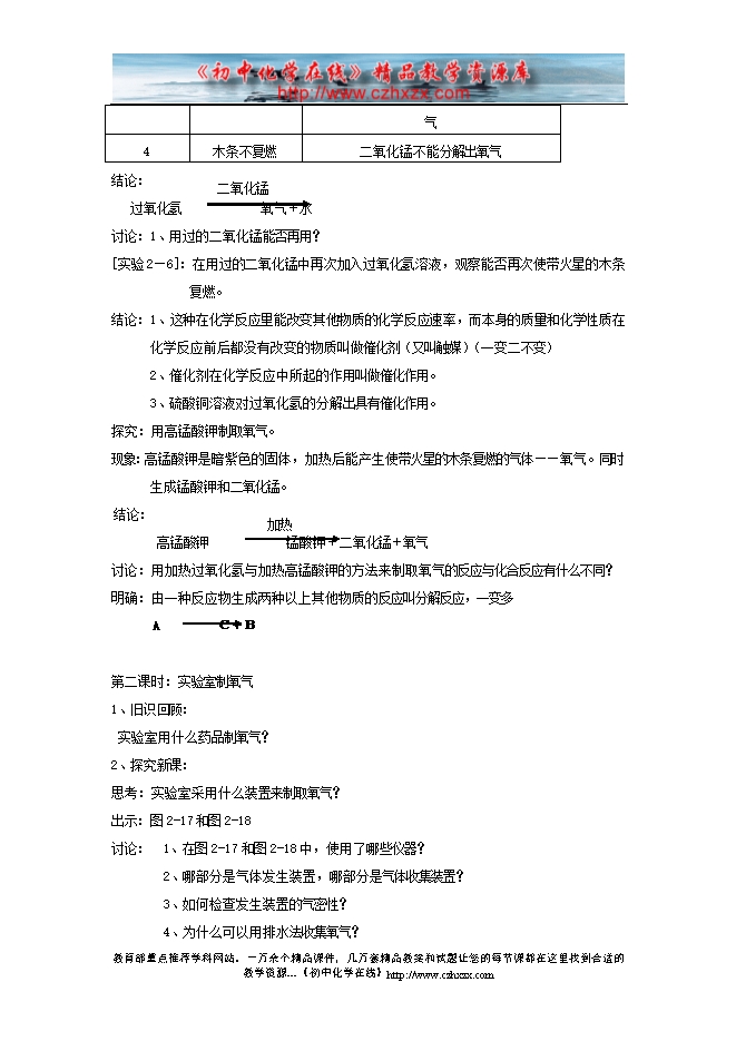 - 上一份资料:人教版《第二单元课题2 氧气》教学设计(方案二)