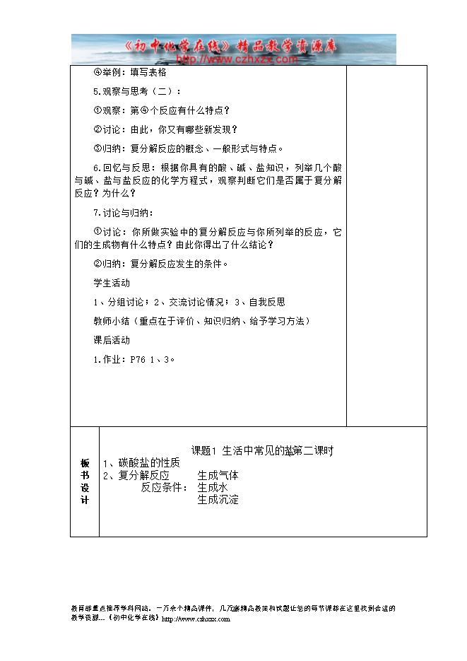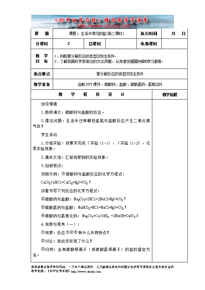 2014-2015新人教版化学九年级下册《第十一单元课题1 生活中常见的盐(第二课时)》教学设计