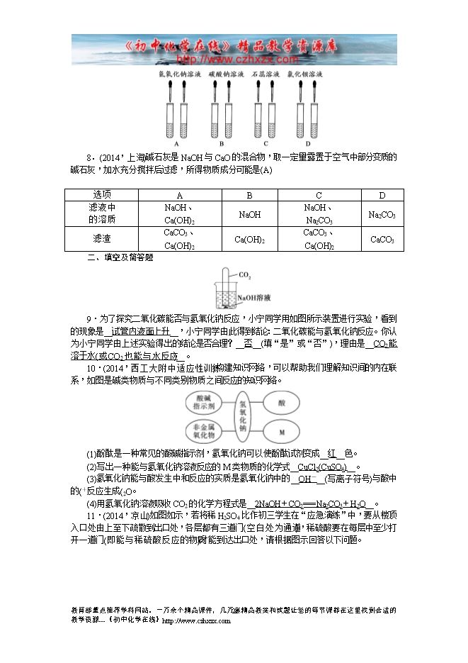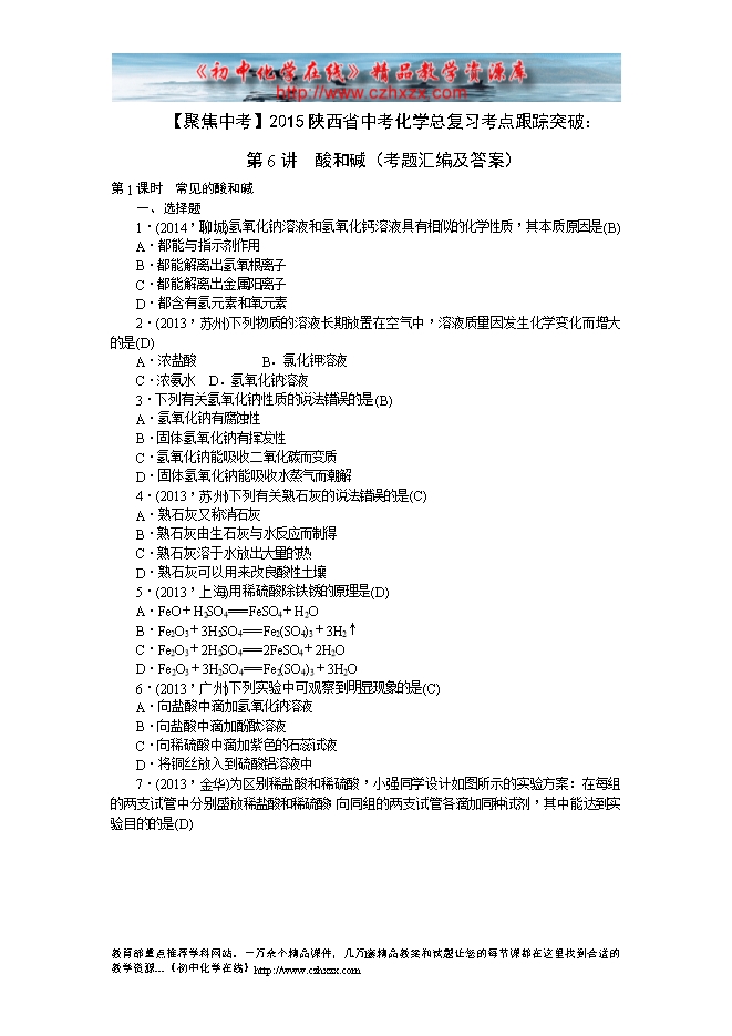 【聚焦中考】2015陕西省中考化学总复习考点跟踪突破:第6讲 酸和碱(考题汇编及答案)
