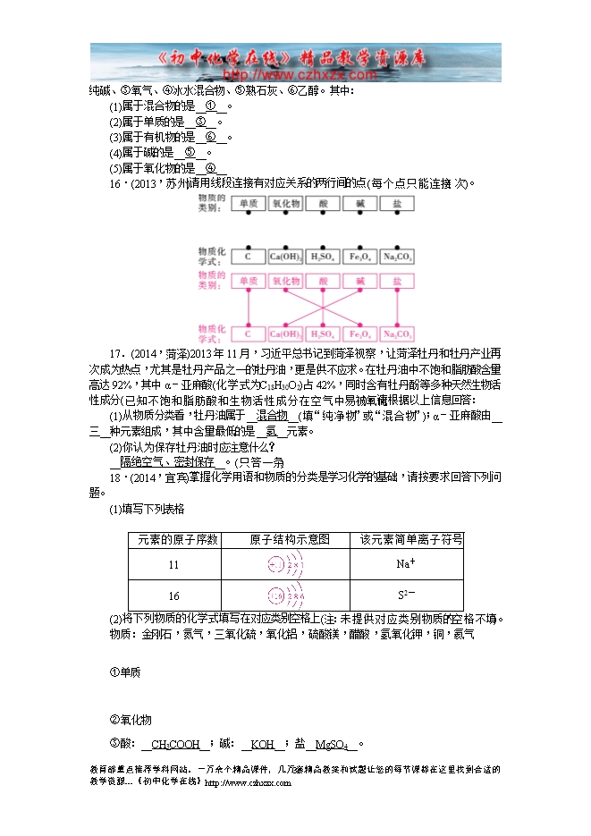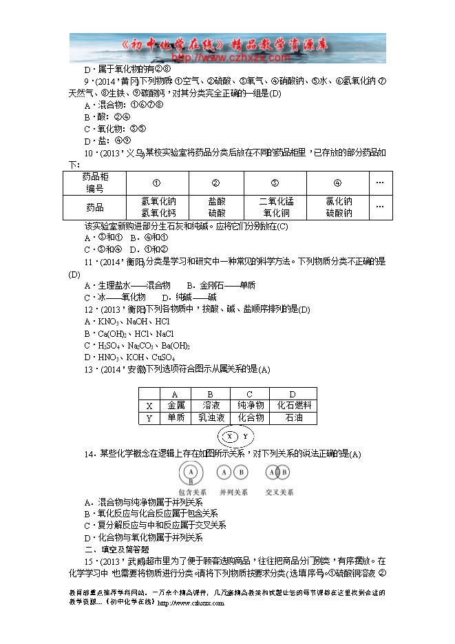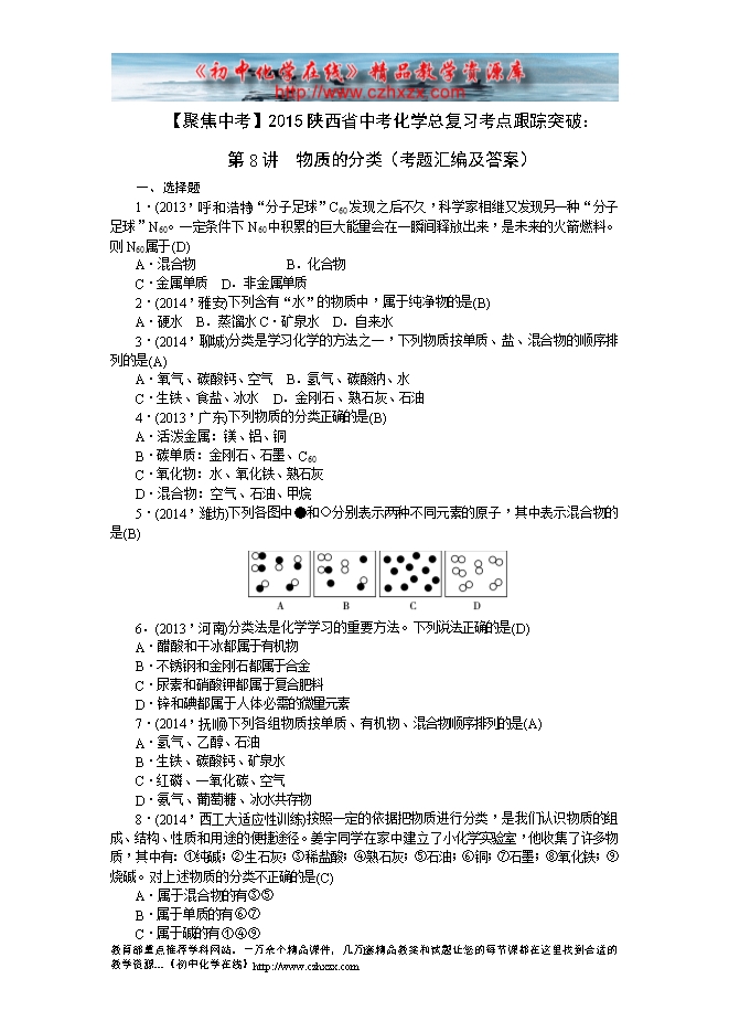 【聚焦中考】2015陕西省中考化学总复习考点跟踪突破:第8讲 物质的分类(考题汇编及答案
