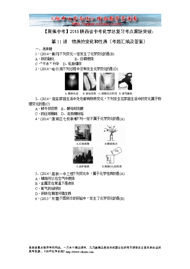 【聚焦中考】2015陕西省中考化学总复习考点跟踪突破:第11讲 物质的变化和性质(考题汇编及答案)