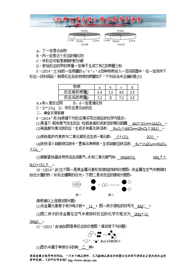 【聚焦中考】2015陕西省中考化学总复习考点跟踪突破:第12讲 化学方程式(考题汇编及答案)