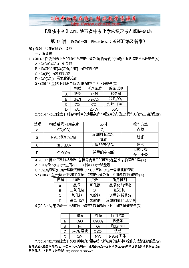 所属专辑: 《【聚焦中考】2015陕西省中考化学总复习考点跟踪突破》考题汇编专辑