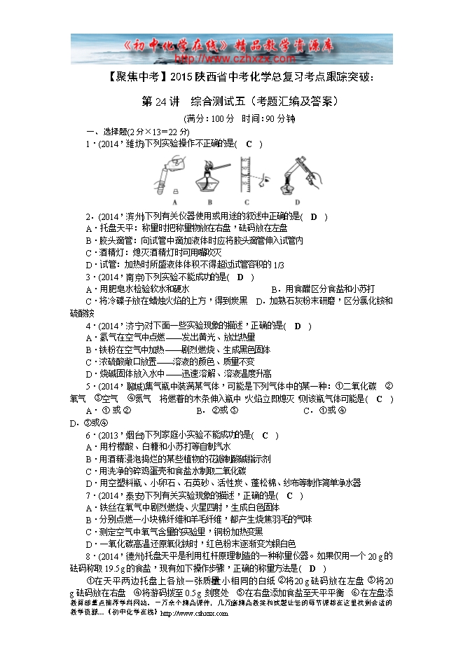 【聚焦中考】2015陕西省中考化学总复习考点跟踪突破:第24讲 综合测试五(考题汇编及答案)