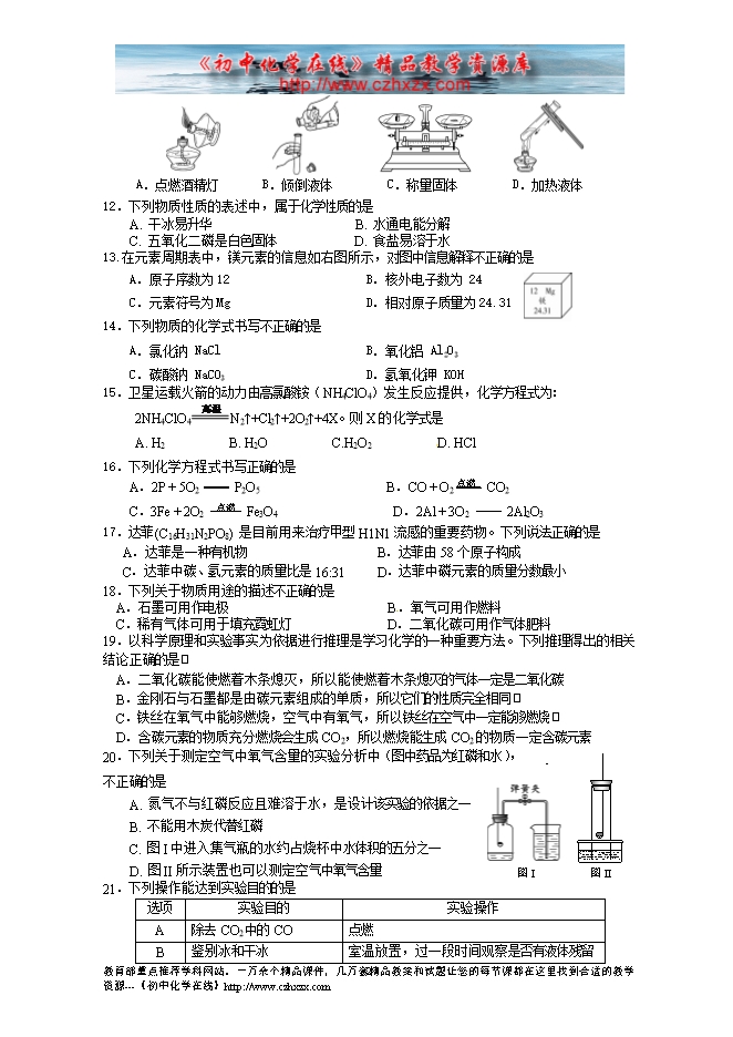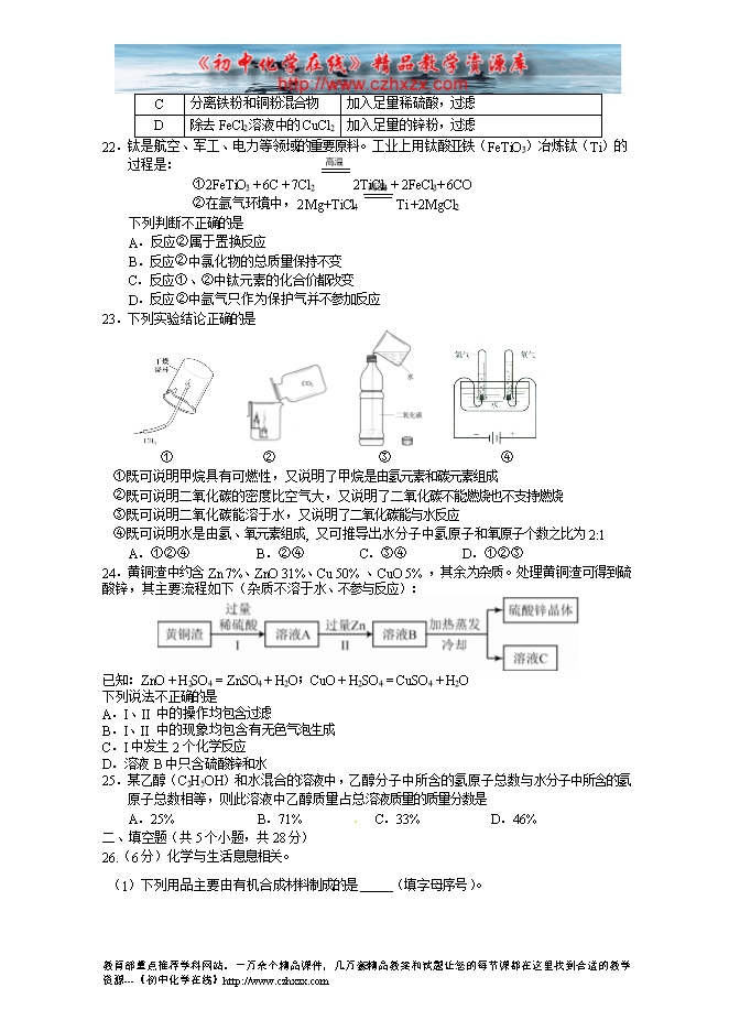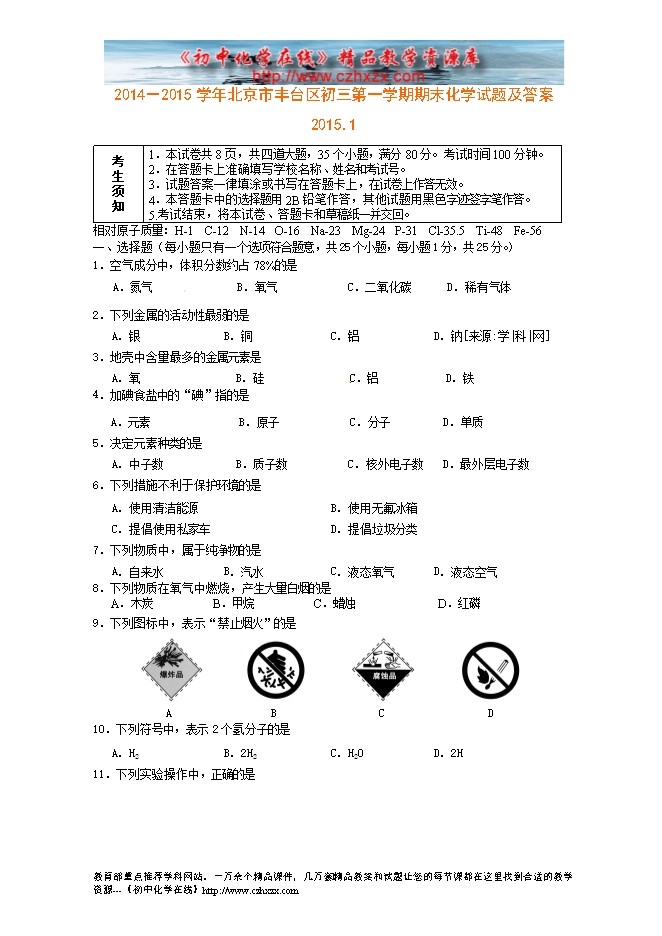 2014-2015学年北京市丰台区初三第一学期期末化学试题及答案