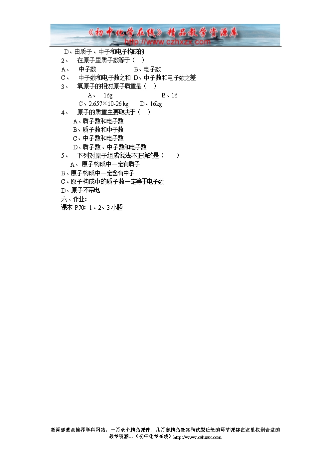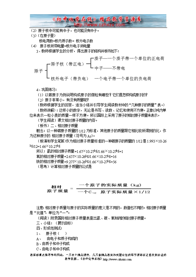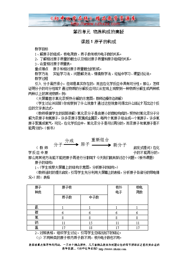 - 下一份资料:人教版《第三单元课题2 原子的结构》教学设计(方案二)