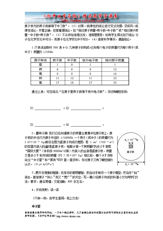 人教版《第三单元课题2 原子的结构》教学设计(方案二)