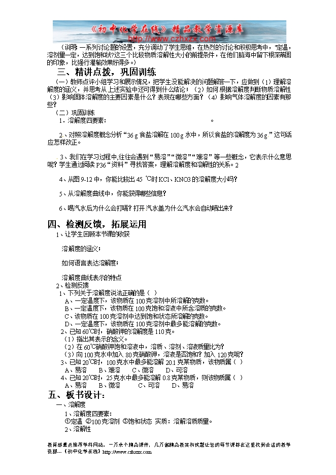 河南省安阳市第十四中学人教版九年级化学下册《第九单元课题2 溶解度(第二课时)》教案