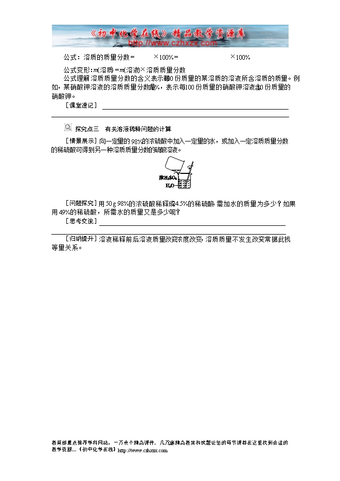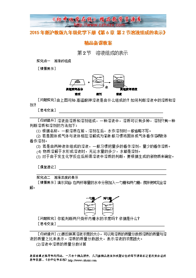2015年新沪教版九年级化学下册《第6章 第2节溶液组成的表示》精品备课教案