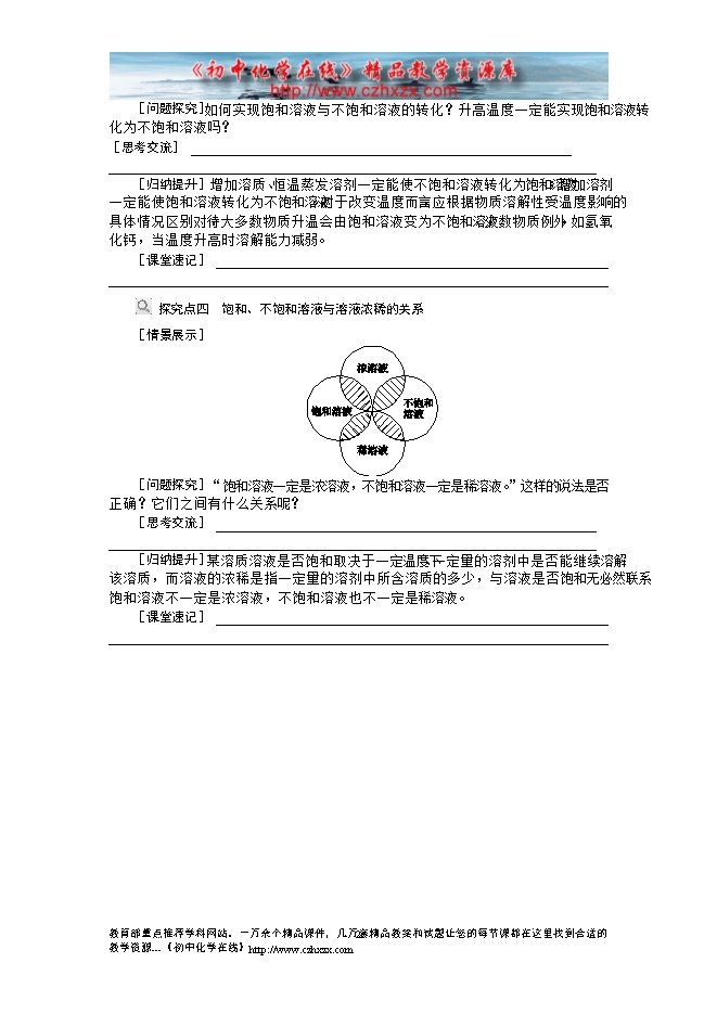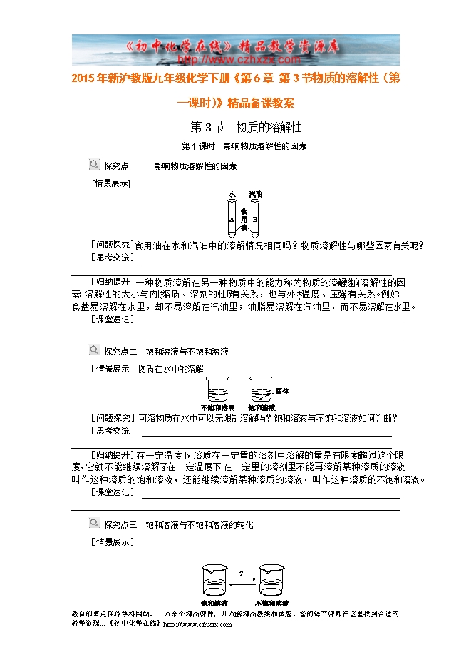 2015年新沪教版九年级化学下册《第6章 第3节物质的溶解性(第一课时)》精品备课教案