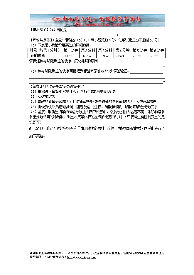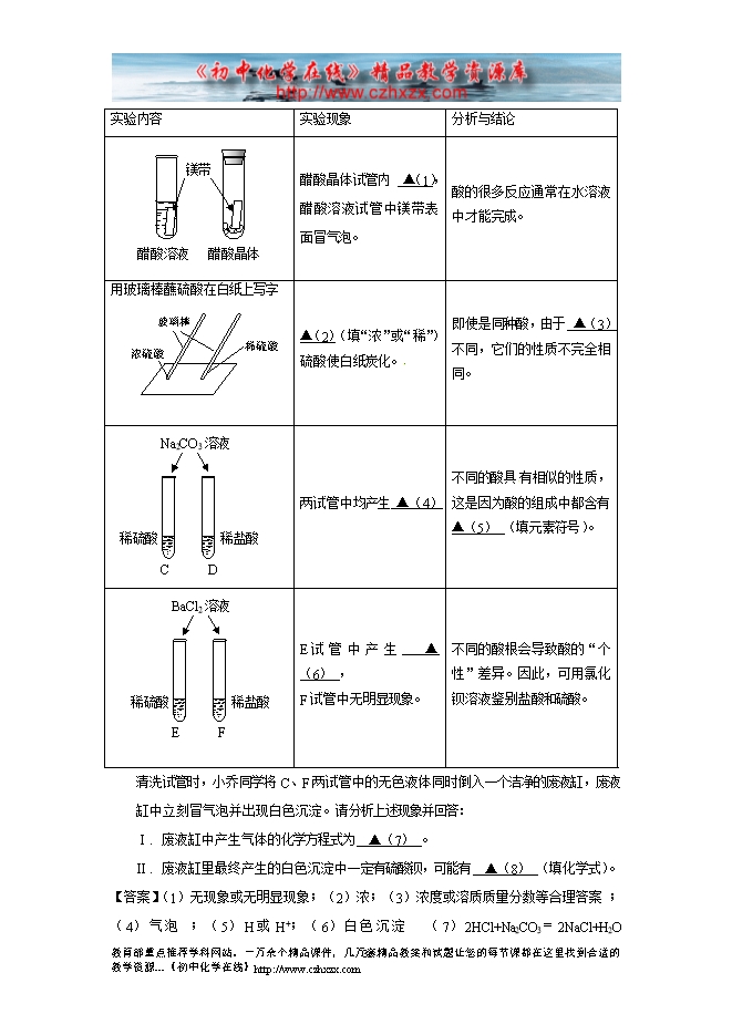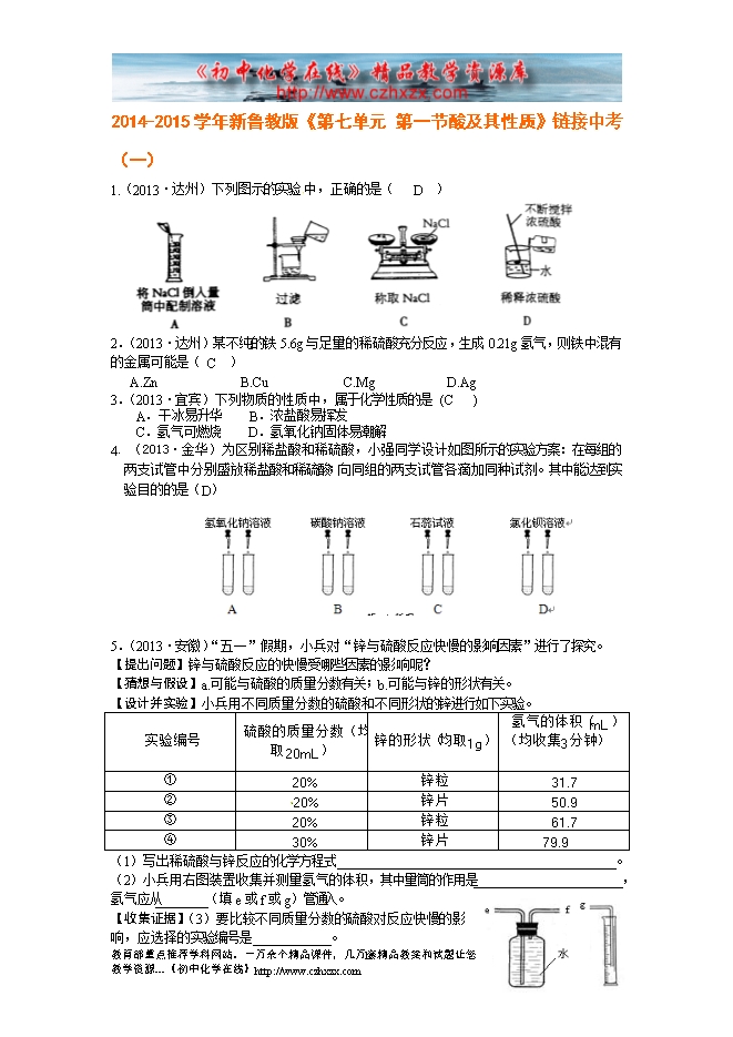 2014-2015学年新鲁教版《第七单元 第一节酸及其性质》链接中考(一)