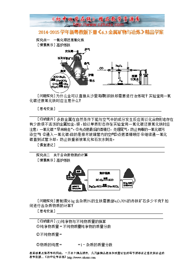 2014-2015学年新粤教版下册《6.3金属矿物与冶炼》精品学案