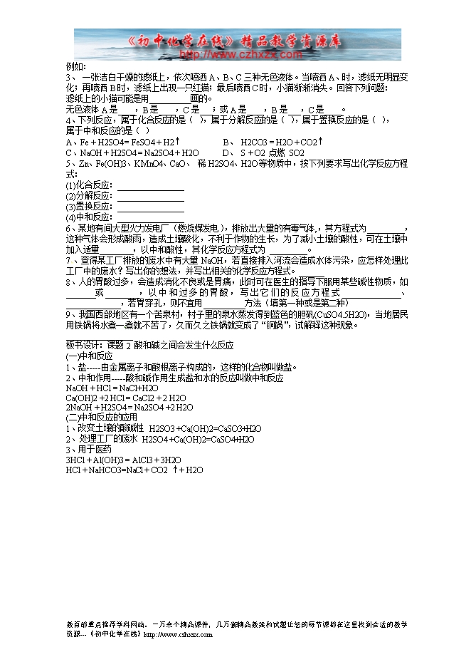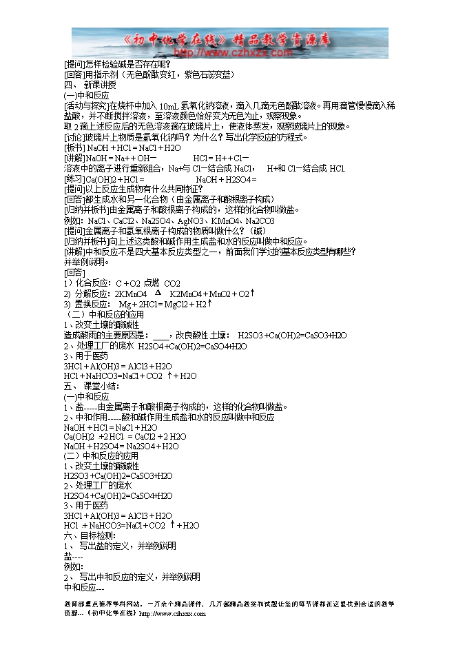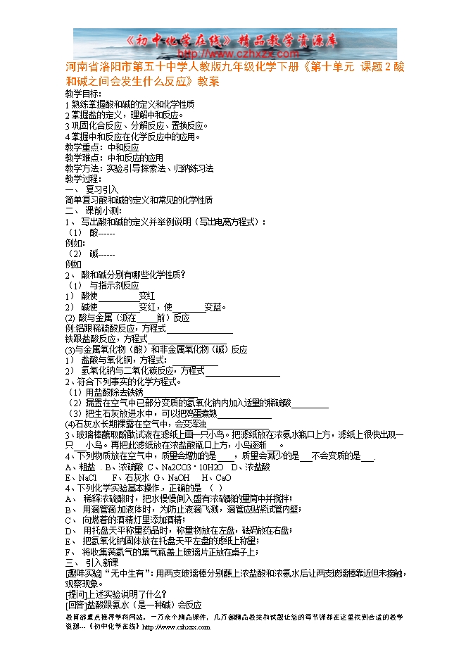河南省洛阳市第五十中学人教版九年级化学下册《第十单元课题2 酸和碱的中和反应》教案