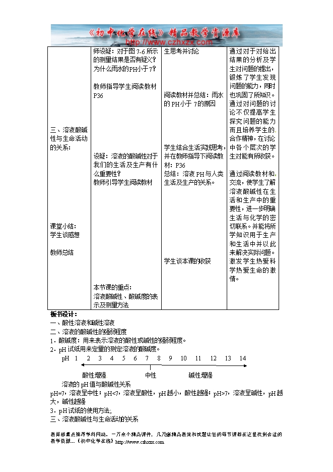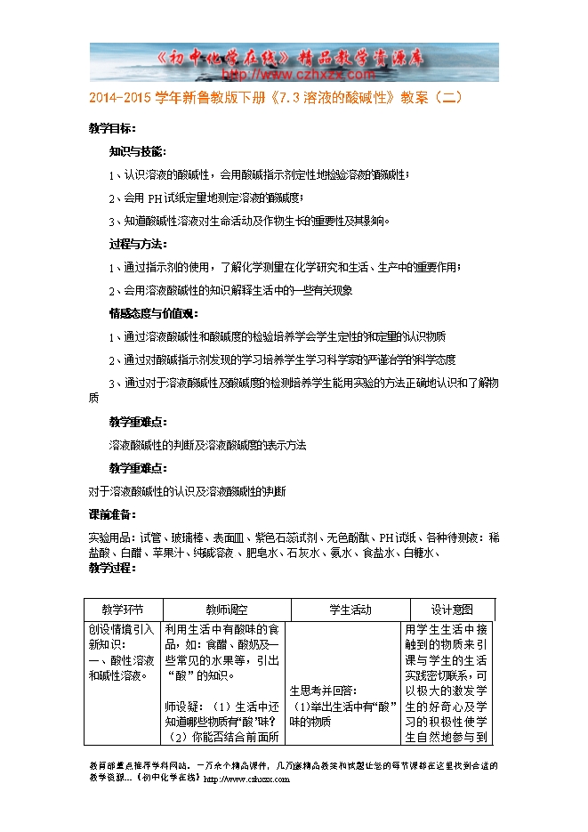 2014-2015学年新鲁教版下册《7.3溶液的酸碱性》教案(二)