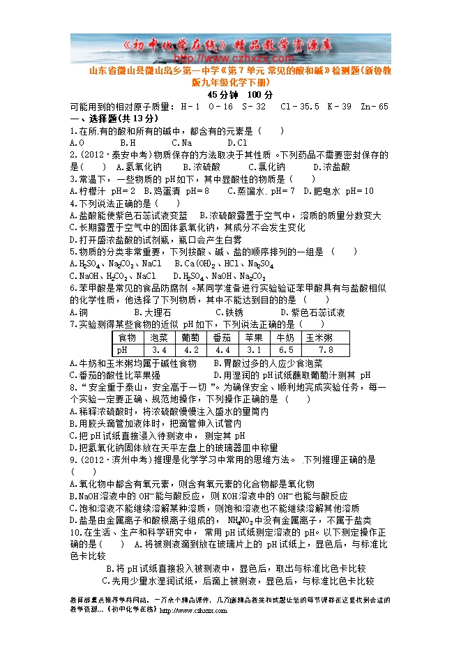 资料版本:鲁教版