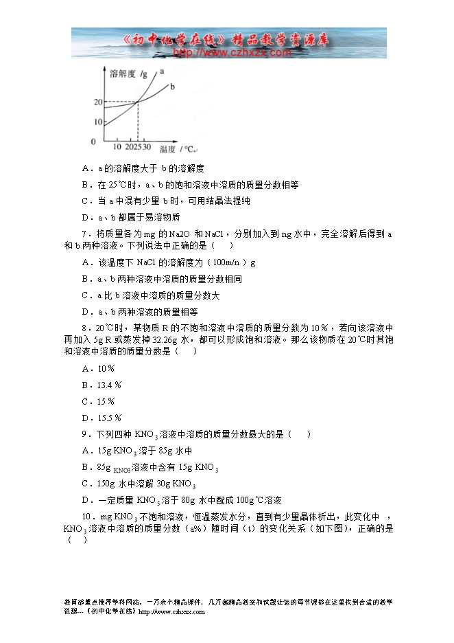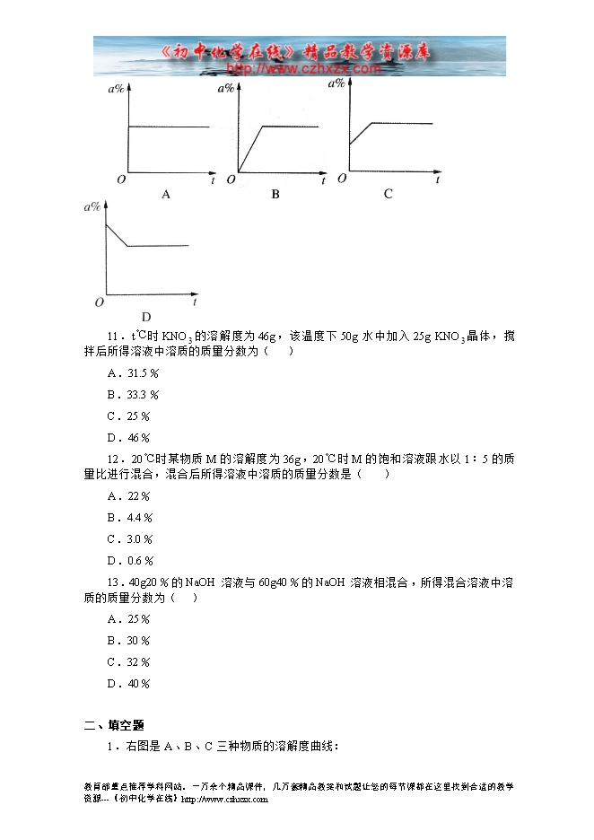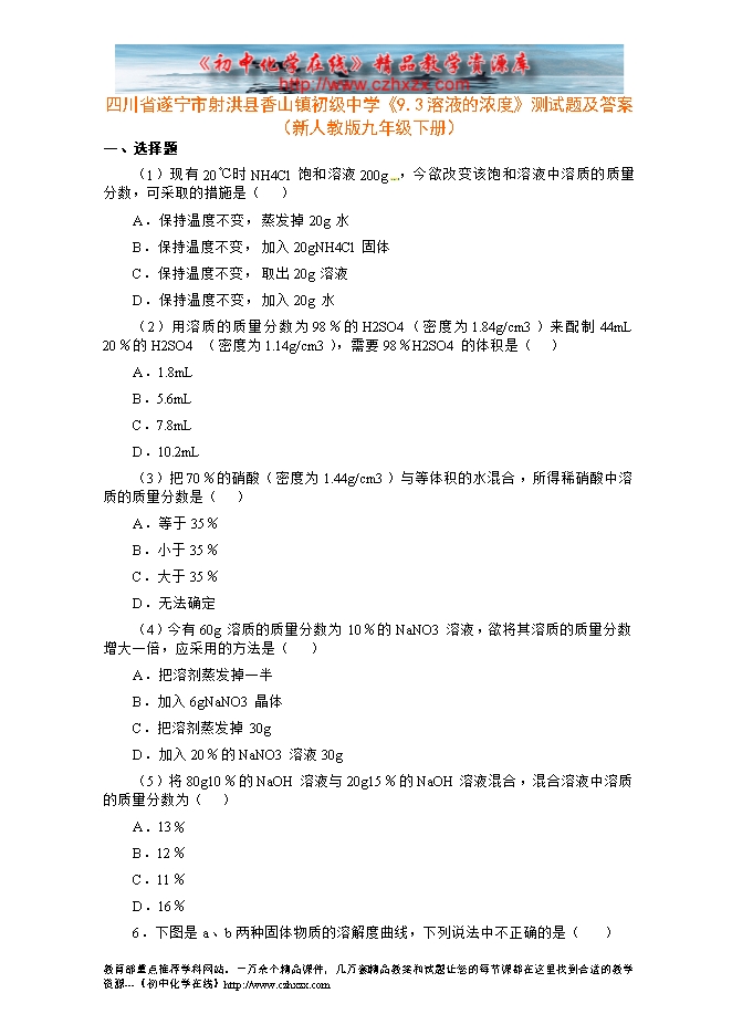 四川省遂宁市射洪县香山镇初级中学《9.3溶液的浓度》测试题及答案(新人教版九年级下册)